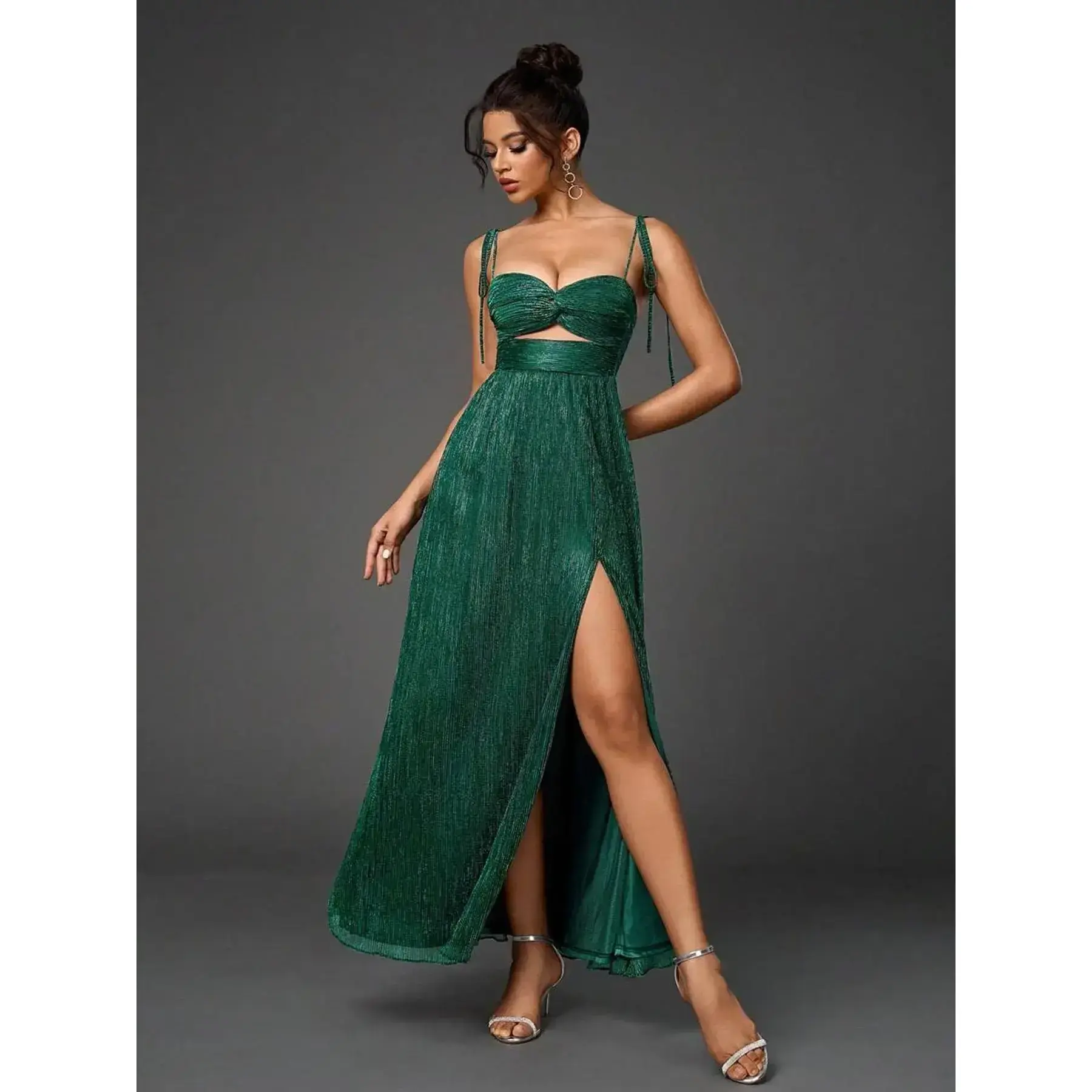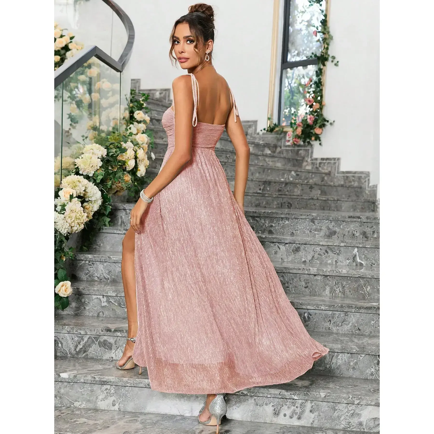 Summer Sweet Vacation Style Elegant Slit Backless Sexy Halter Long Dress, Slim-Fitting Midi Dress, All Seasons Fashion