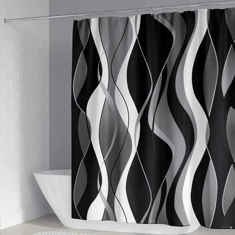 4pcs Black Shower Curtain Sets with Non-Slip Rugs, Toilet Lid Cover and Bath Mat, Black and Gray Bathroom Decor Set Accessories Fabric Shower Curtains with 12 Hooks, 72 x 72 Inch Bathroomcurtain Showercurtain