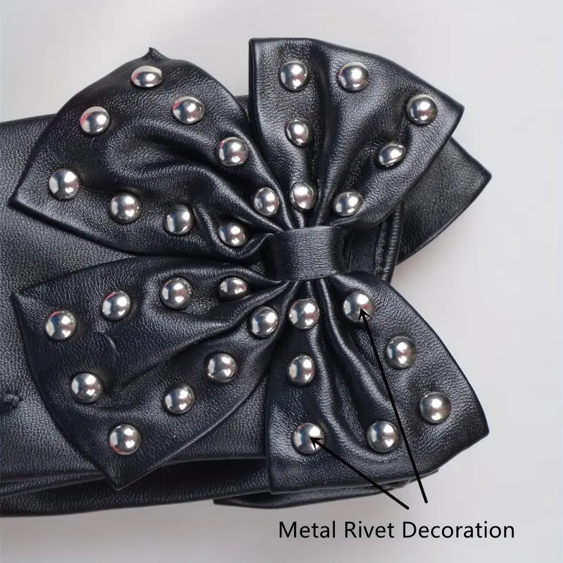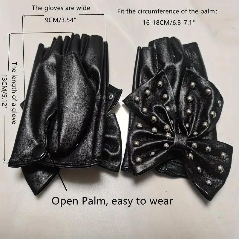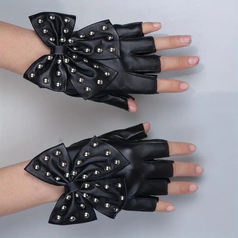 RivetBowPULeatherGlovesPunkDancePerformanceHalfFingerGlovesHipHopElasticGlovesForWomen-b