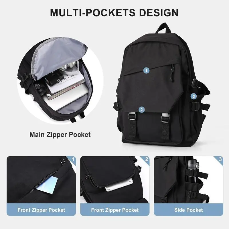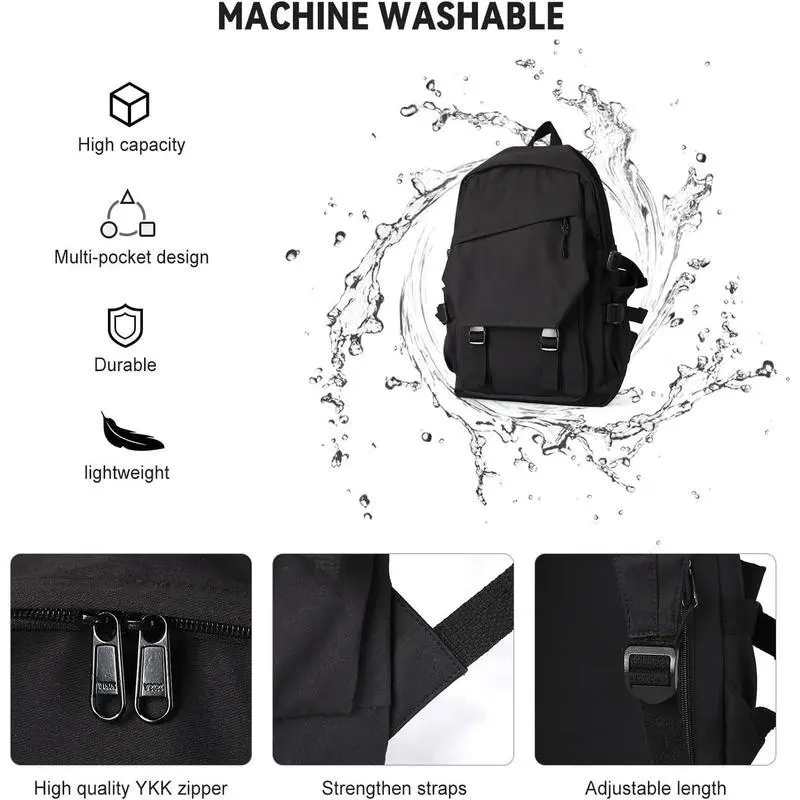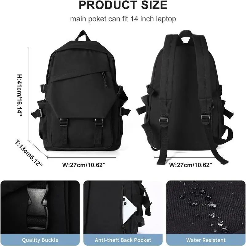 SchoolBackpackforMenWomenCollegeBookbagWaterproofLightweightBlackBackpackMochilasBookBagRucksackCasualDaypackSchoolBagforBoysGirls