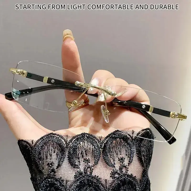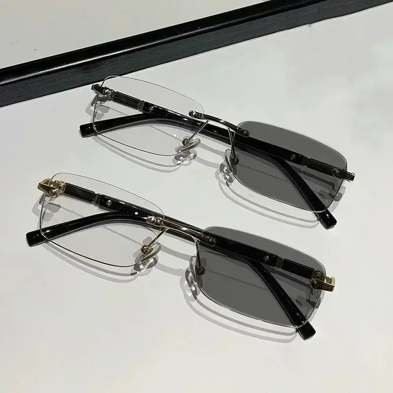 Square Rimless Photochromic Myopia Glasses Men Women Business Anti-UV Nearsighted Eyewear Retro Eyeglasses 0-1.0-4.0