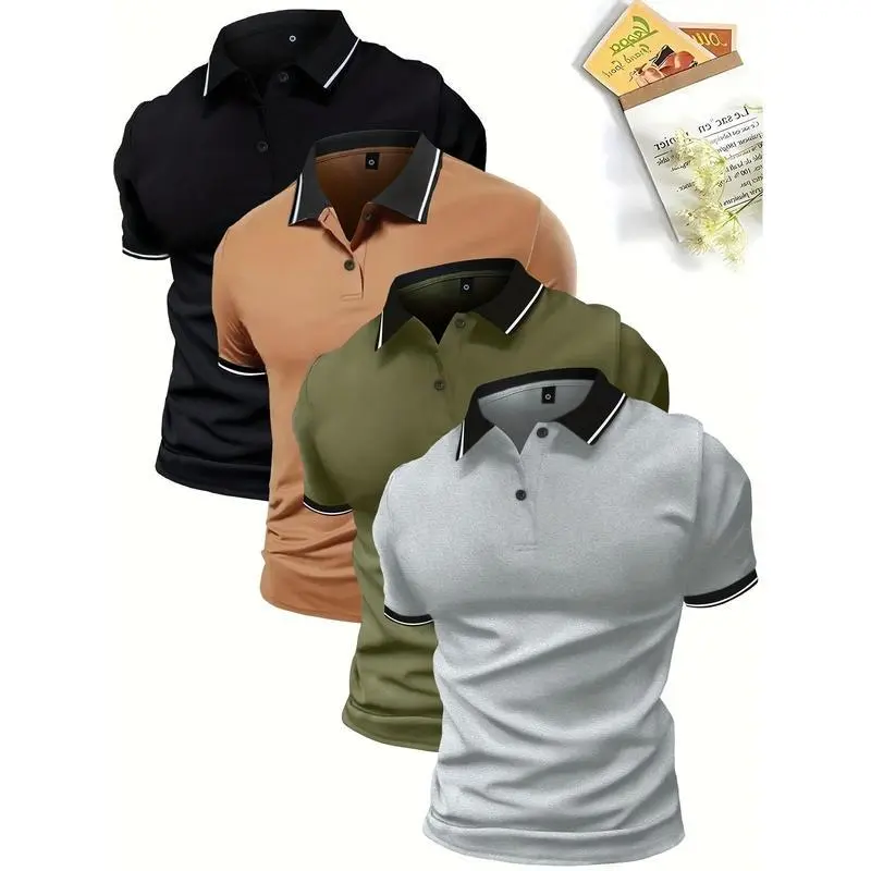 4-PackMen'SPoloShirts,SolidColorShortSleeve,RegularFit,KnitFabric,Polyester95%,Elastane5%,LapelCollar,ButtonDetail,SlightStretch,CasualSportswearTopsathleisurewearShortsleeveMenswearBasicNaturalTropicalSweat