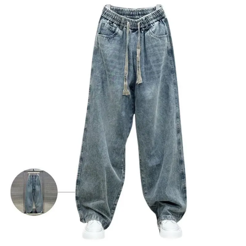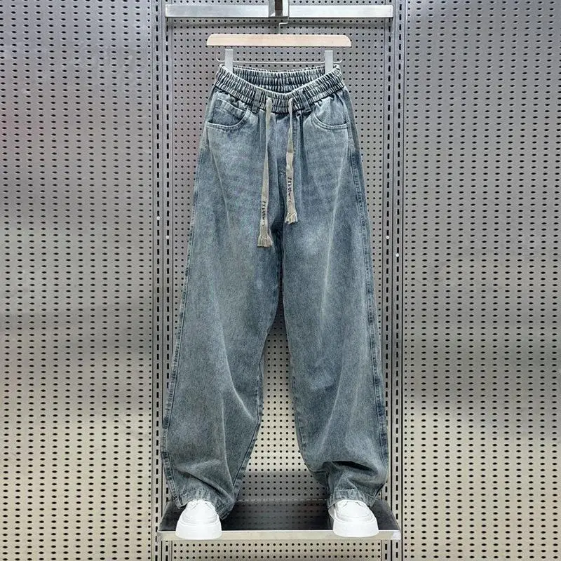 Men'sWideLegJeanswithElasticWaistDrawstring,StreetStyle,CasualJeans,Men'sCasualJeansMenswearLooseMidStylish