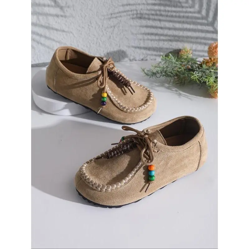 ��Arch Support��: Featuring an integrated arch support, these shoes provide enhanced stability and reduce foot fatigue during long walks. ��Unique Material��: Constructed with a soft cork insole topped with a cloth upper, providing a blend of cushioning and breathability. ��Round Toe Shape��: Designed with a round toe shape that allows for natural toe splay, promoting comfort and better balance. ��Lightweight Build��: The lightweight construction makes these loafers easy to wear, ensuring less strain on the feet throughout the day. ��All-Season Use��: These shoes are suitable for all seasons, adaptable to varying weather conditions without losing functionality. ��Bohemian Chic Design�� �C Stylish suede loafers with colorful beaded tassels, perfect for adding a vintage boho touch to any outfit.