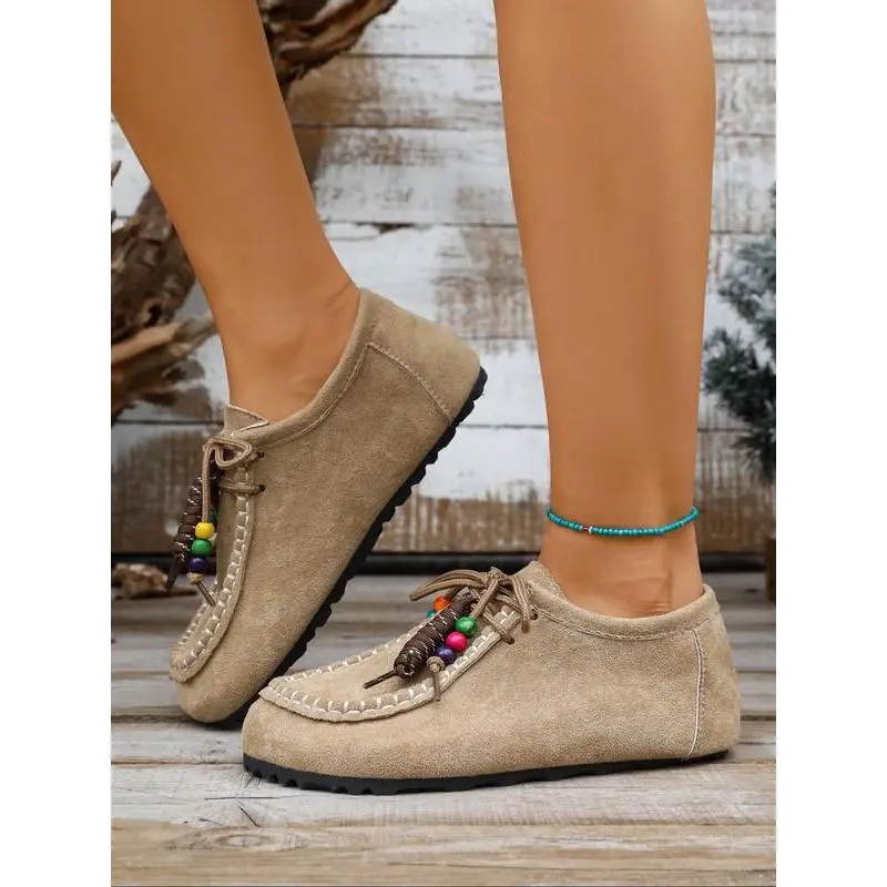 2025 Boho Beaded Tassel Moccasins for Women �C Soft Suede Slip-On Loafers with Arch Support, Casual Vintage Comfort Walking Flats