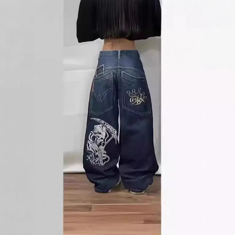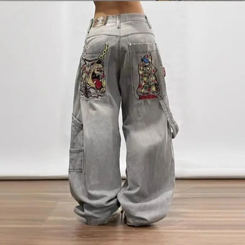 Jeans American High Street Personalized Patterns Loose Straight Wide Leg Jeans Cute Jeans Pants Streetwear