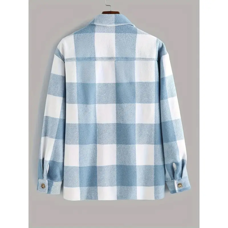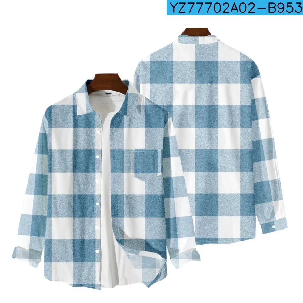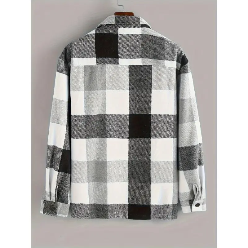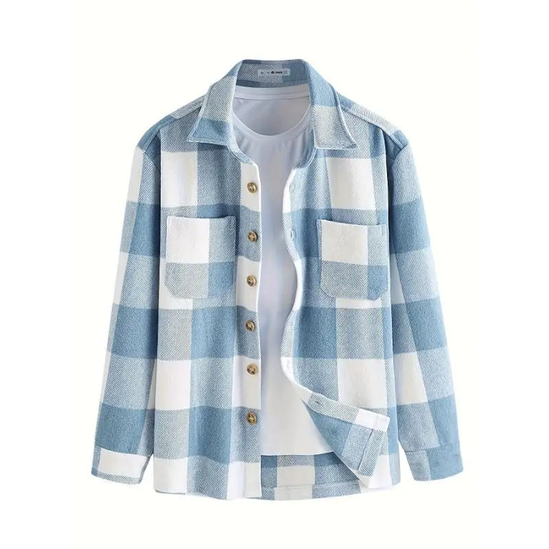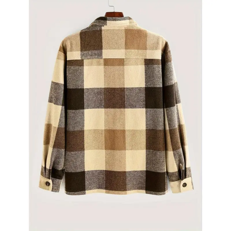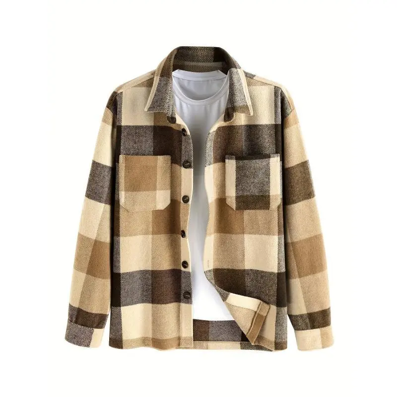 Lightweight Flannel Men's Plaids Shirt Button Down Shacket Casual With Pockets Collar Menswear Collar Tops Overshirt Sleeve Hem Polyester