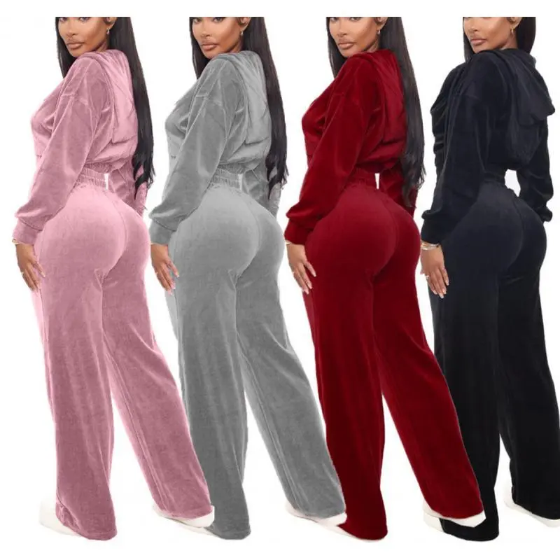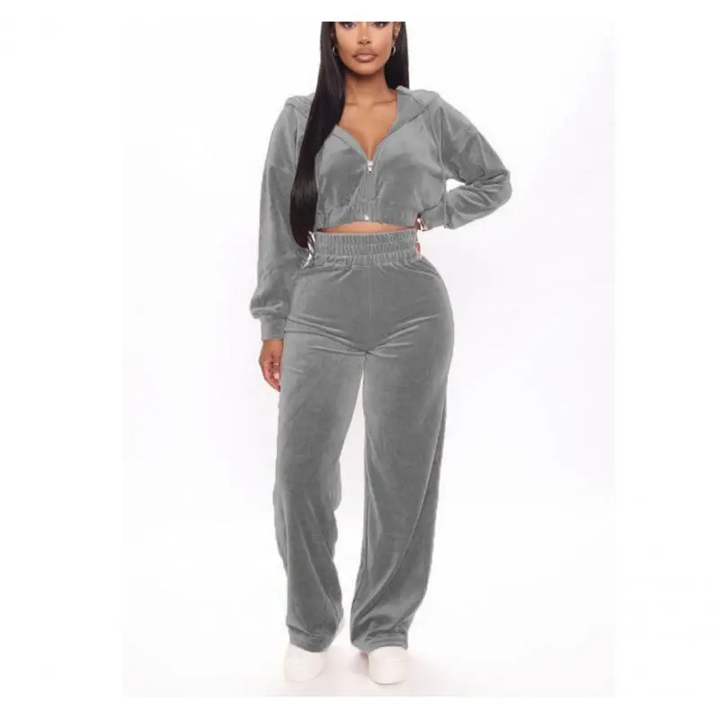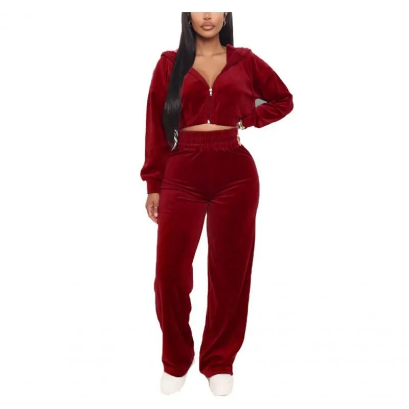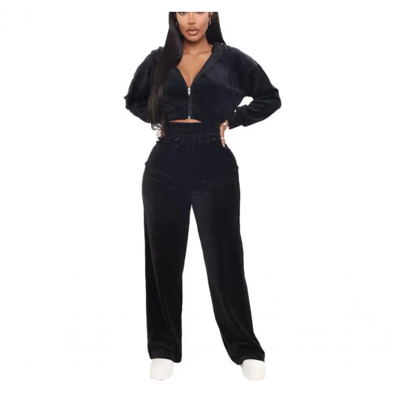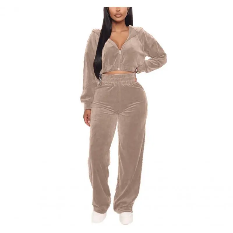 2025TrendyWomen’sKoreanVelvetZipperJacketStraightPantsSetforAutumnWinterOutfitsClothesWomenswearWomen'sLoungeSweatsuitSetOversizedGamisTrouserBasicFitted