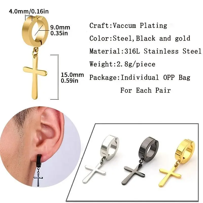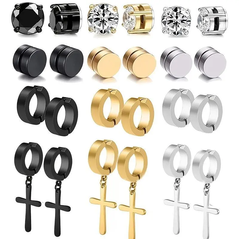 12pairs Magnetic Stainless Steel Non Pierced Earrings For Men Magnet CZ Clip On Dangle Earrings Set Earcuff Diy Jewelry Accessories