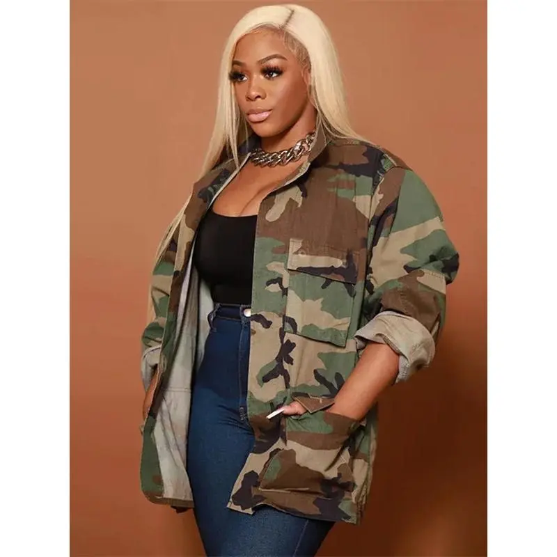 Camouflage Print Big Pocket Jacket 2025 Spring INS Clothing Long Sleeve Camo Trench Coat Casual Oversize Cardigan Top Outwear Light Womenswear Gamis