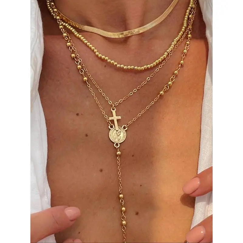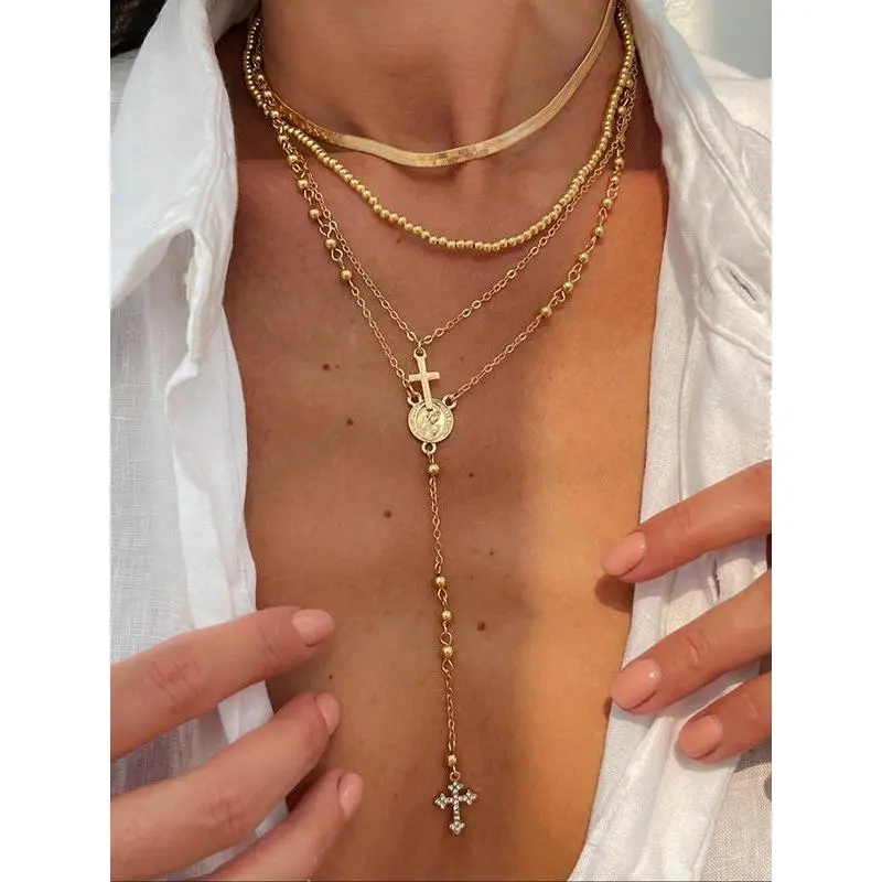 【Unique Layering】: This necklace set features a multi-layer design, enhancing visual appeal with its intricate cross pendants. 【Durable Material】: Crafted from zinc alloy, this jewelry ensures longevity and withstands regular wear without tarnishing. 【Perfect Gift】: Ideal for birthdays or parties, this set makes a thoughtful gift choice for friends and loved ones. 【All Seasons Wear】: Designed to complement any attire, making it a go-to accessory suitable for every season throughout the year. 【Chic Accessories】: Includes multiple pieces that can be worn together or separately, offering flexibility in styling your outfits.