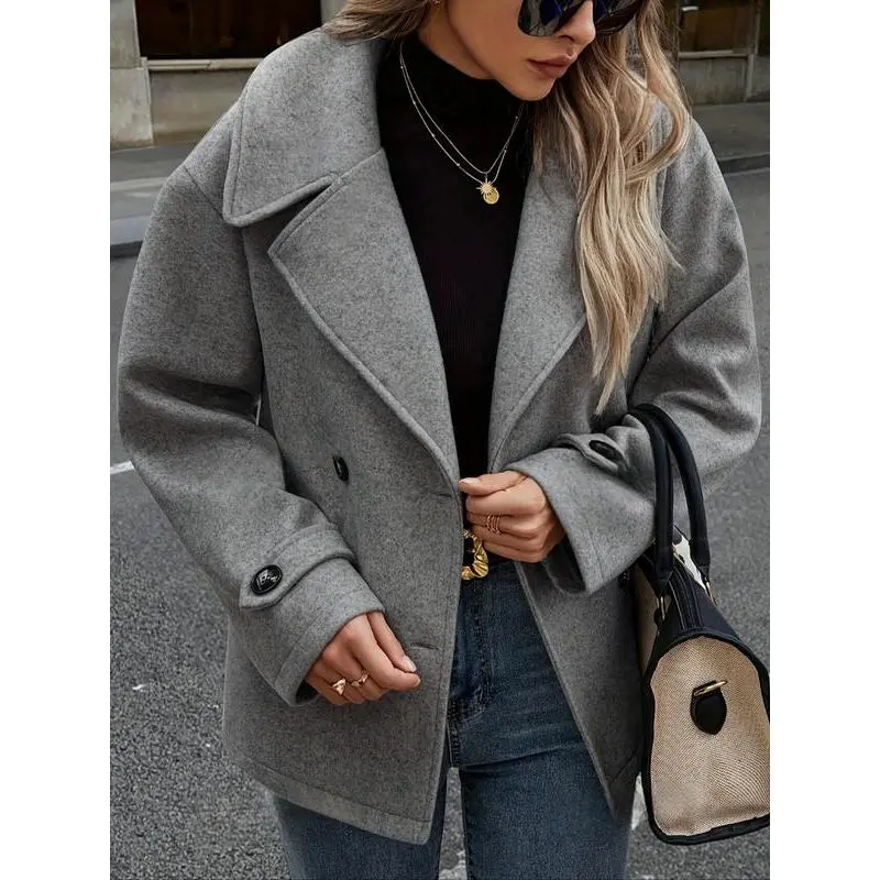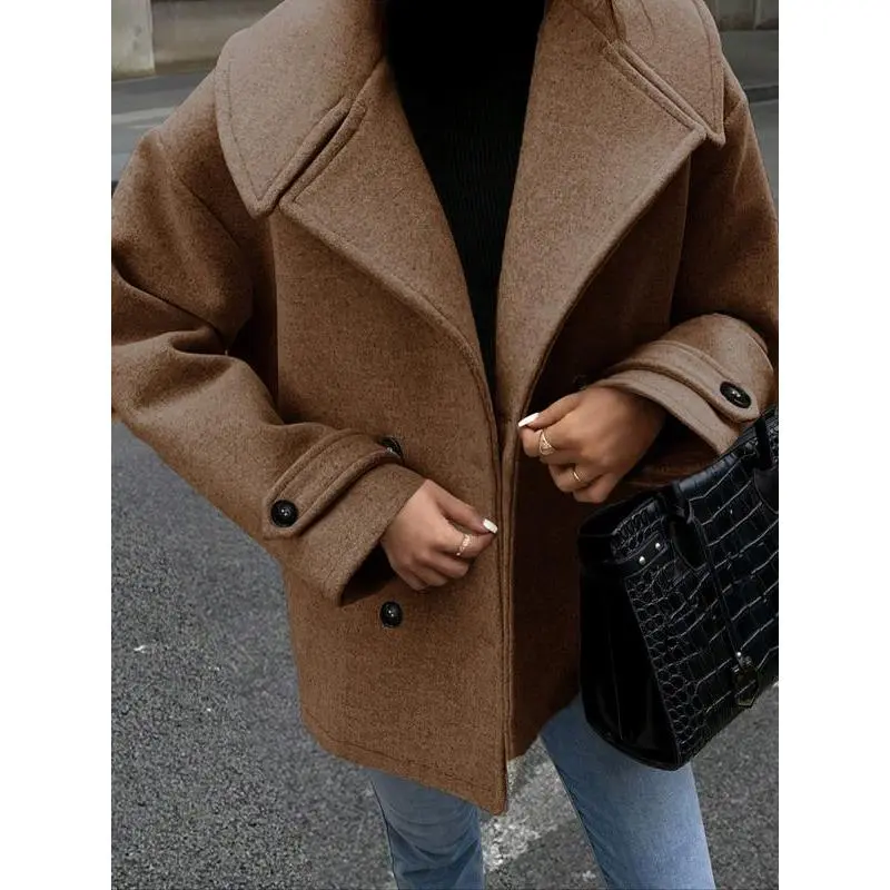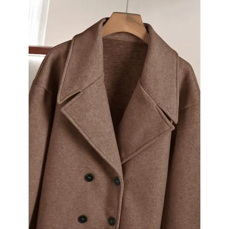 Elegant French Style Women's Wool Coat Jackets, Lapel Collar, Western Suit Design, Comfortable Casual Autumn Winter Short Overcoat