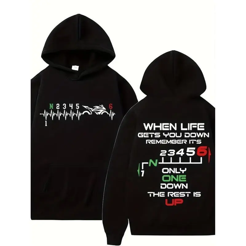 Men Motorcycle Biker Hoodie With Heartbeat Line And Inspirational Quote Print Relaxed Fit Pullover For Autumn Winter Comfortable Biker Apparel