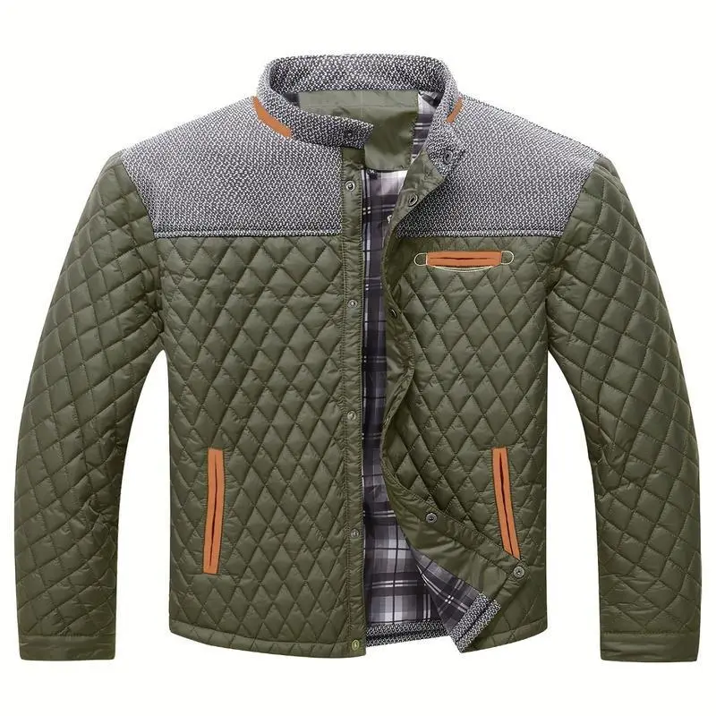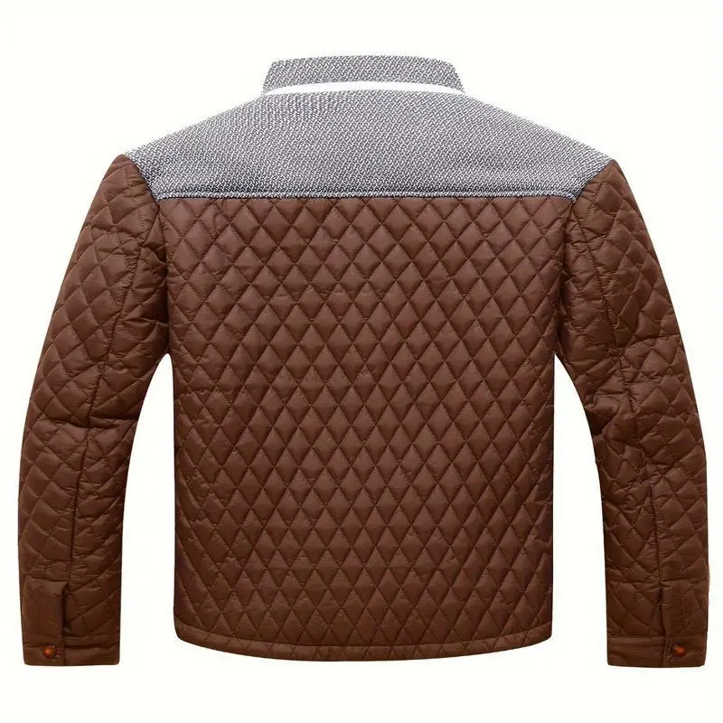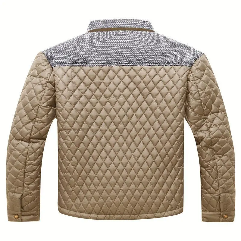 [Quilted Men's Jacket] Lightweight Quilted Men's Jacket | Warm, Casual Style with Pockets, Stand Collar, Button-Up Front, Beige & Gray Color Block, Polyester Fabric, Perfect for Fall & Winter Coats Menswear Sleeve Tops Black drippy outfit