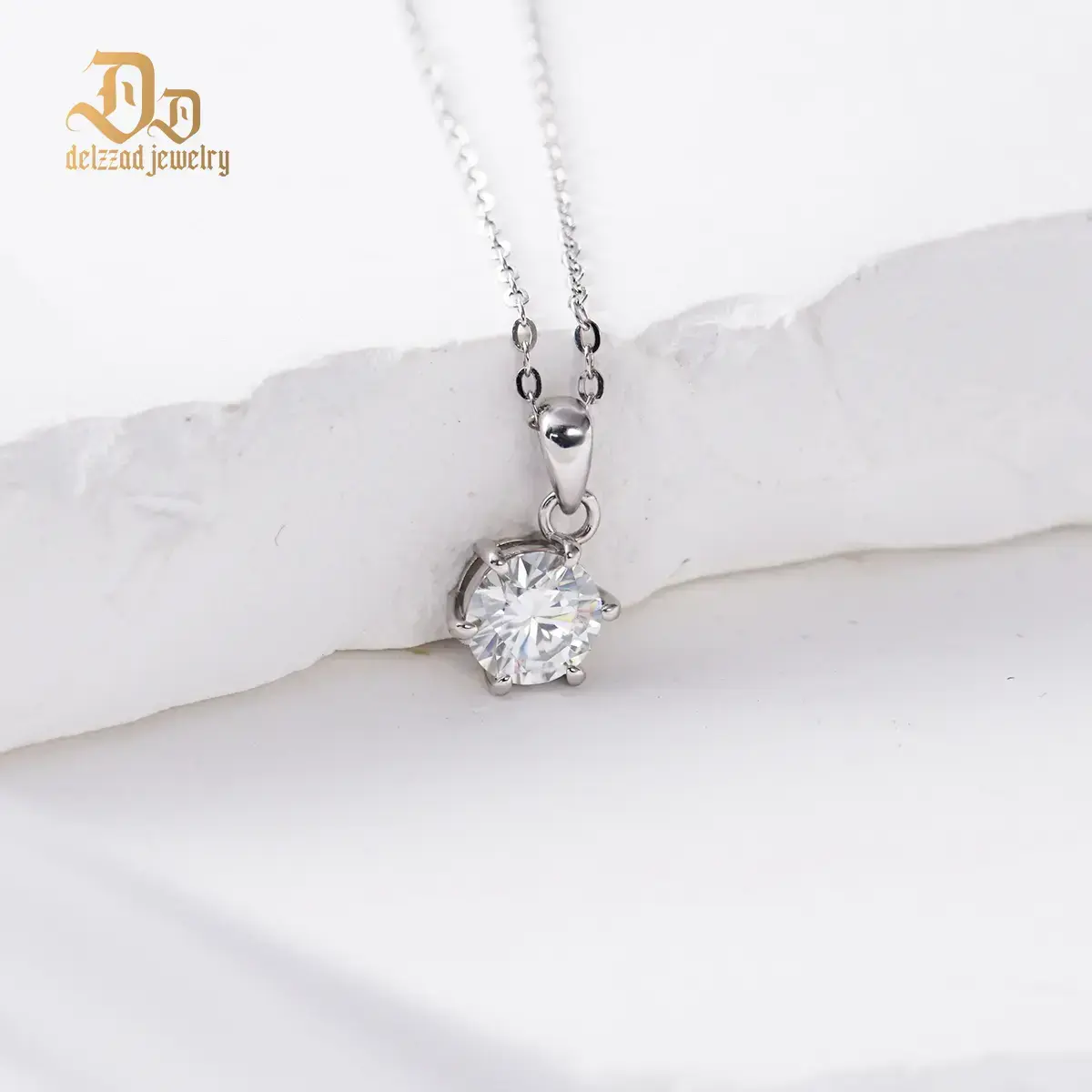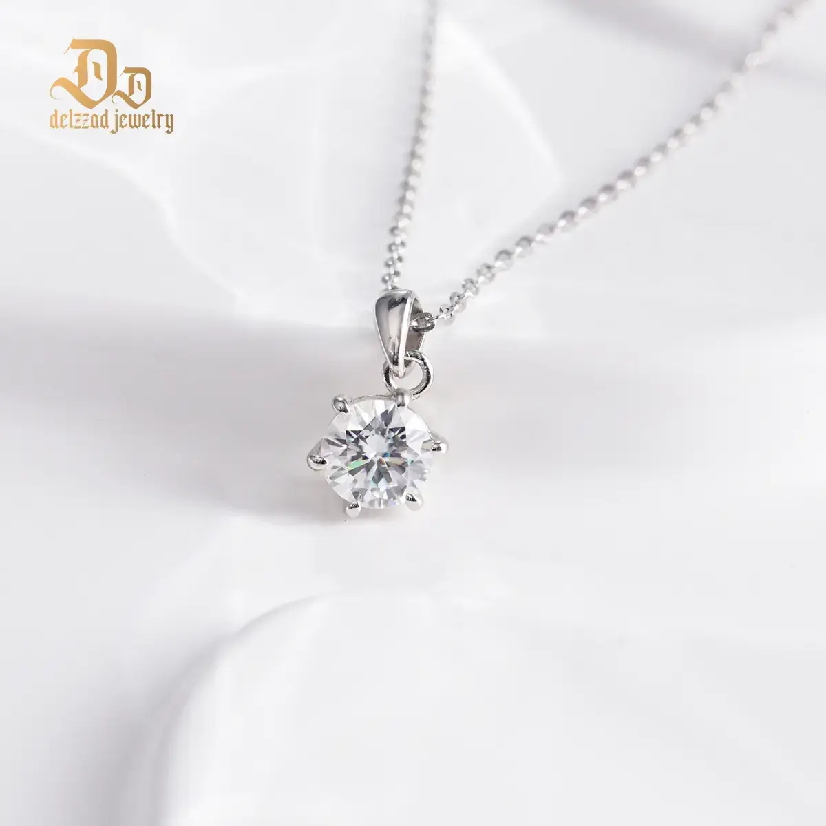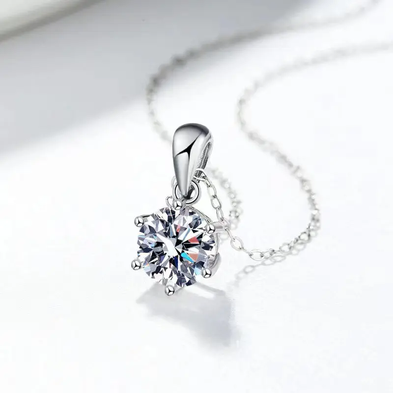 Round Six-Prong Pendant D Color VVS Synthetic Moissanite S925 Women Solitaire Necklace Chain Perfect for Any Occasion & Everyday Wear Engagement Anniversary Mother's Day Christmas Lover Gifts