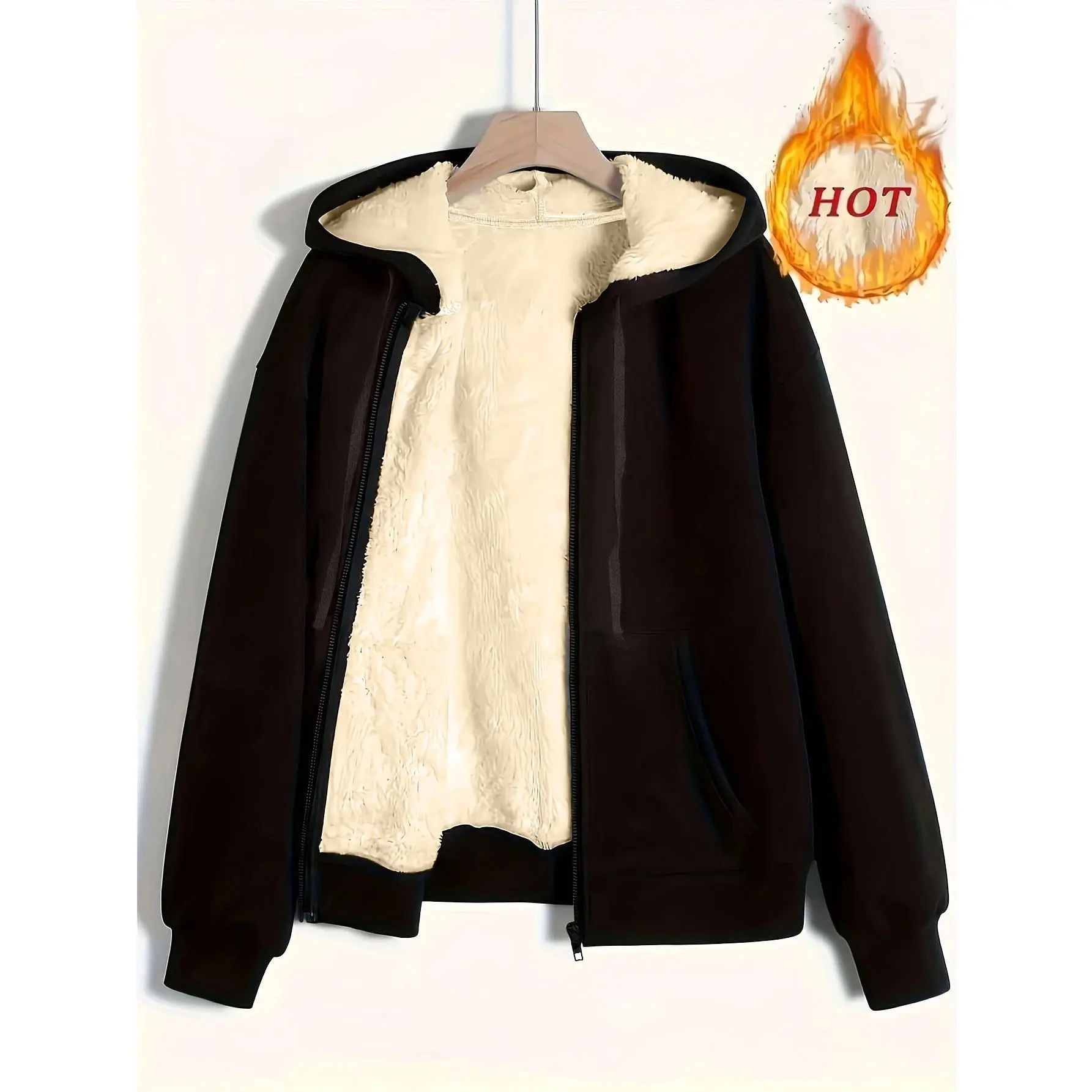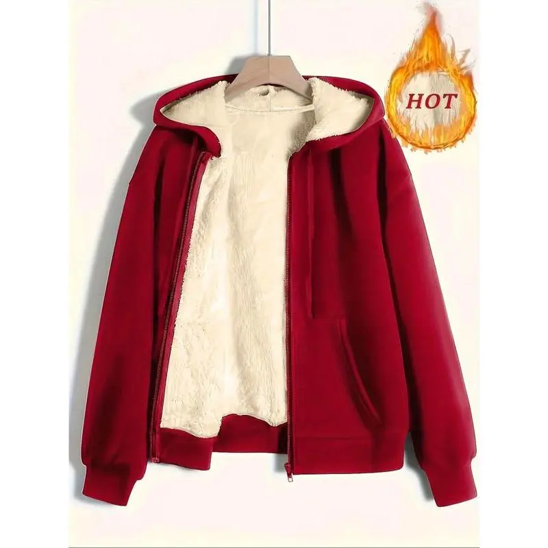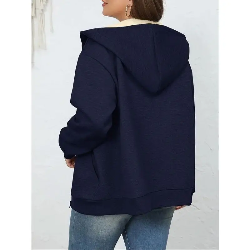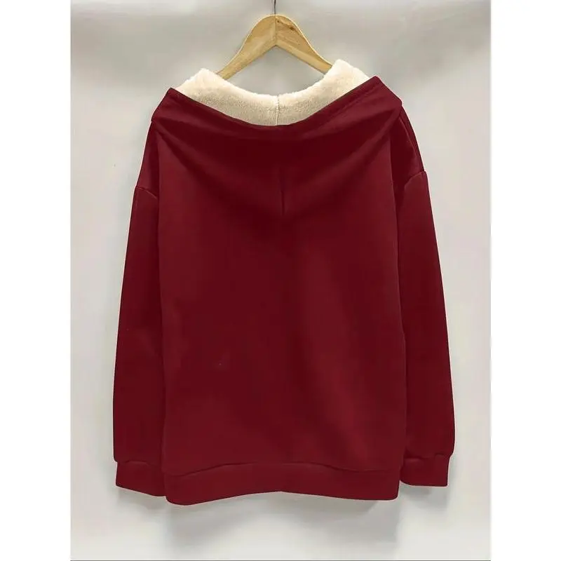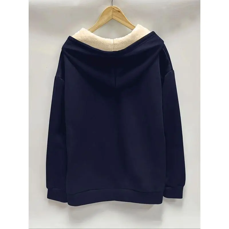 Women's Plush Hooded Sweatshirt Jacket, Casual Long Sleeve Drop Shoulder Design, Fall & Winter Warm Outerwear for Ladies