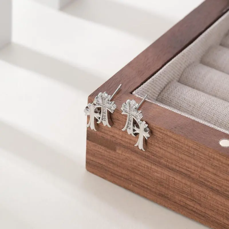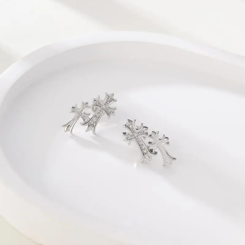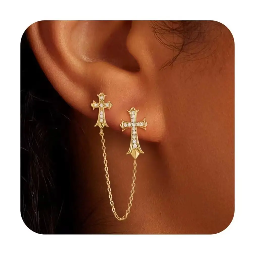 Gold Double Cross Stud Earrings for Women and Men Gold Small Pave Dangling Hypoallergenic Lightweight Accessory