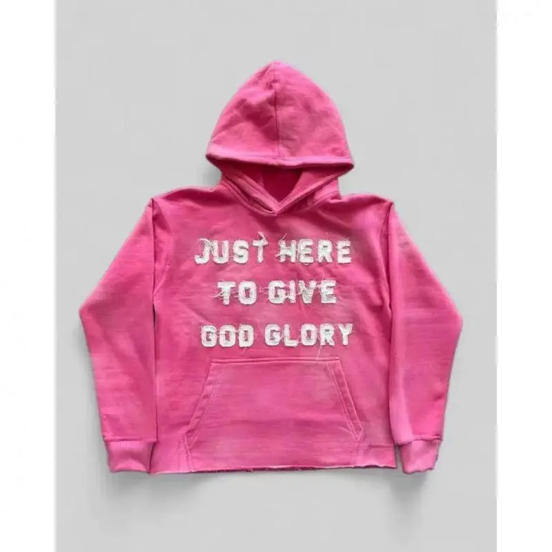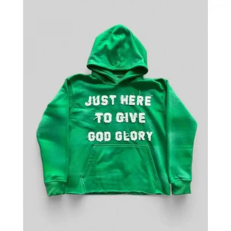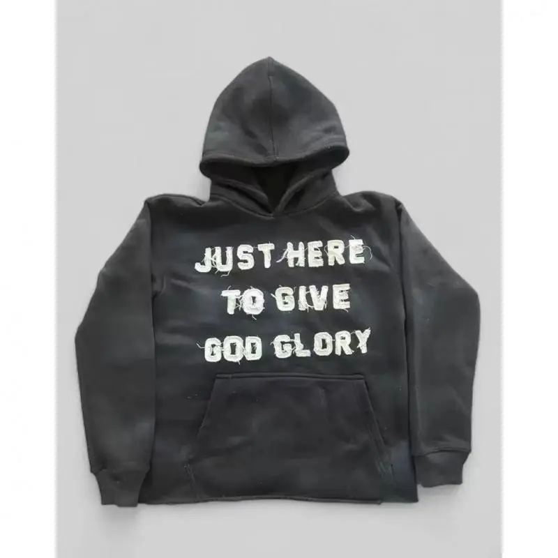 "JustHereToGiveGodGlory"HoodiesCottonMenswearDistressedEmbroiderySunSweatshirtsManTopsPulloverEmbroidered