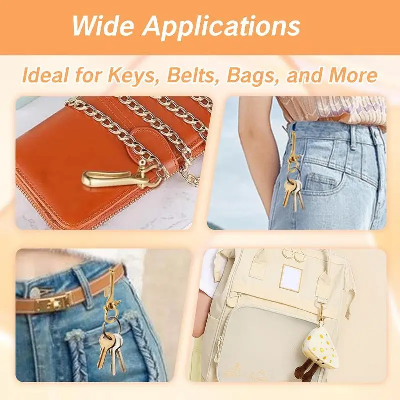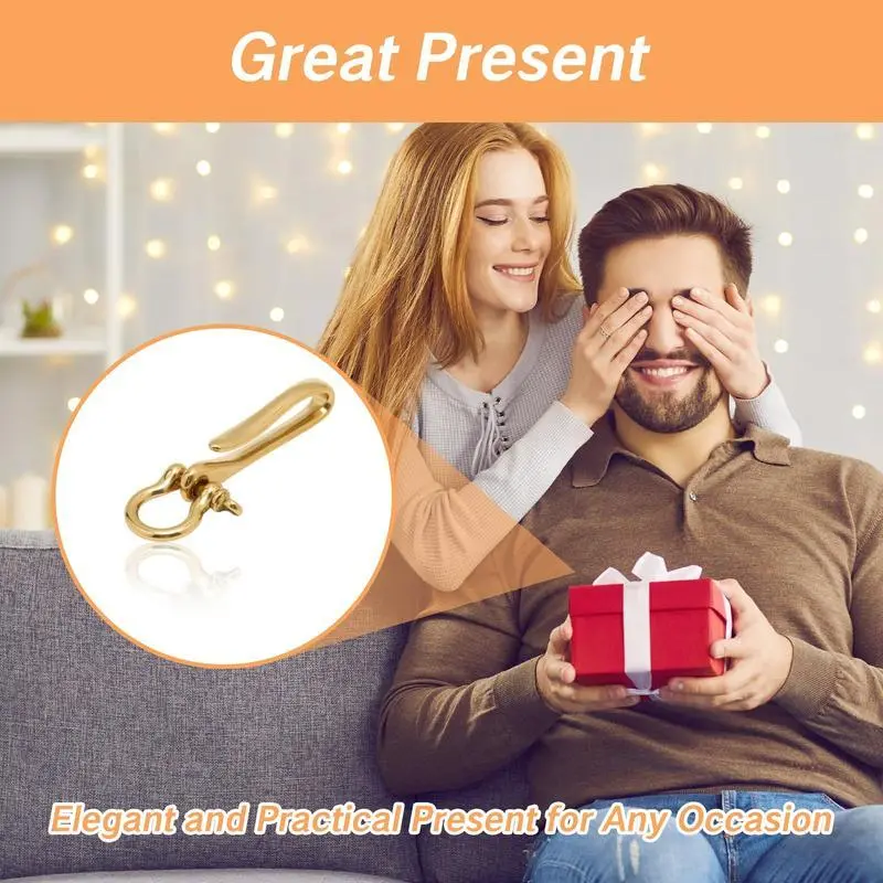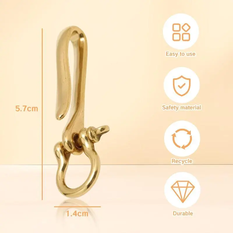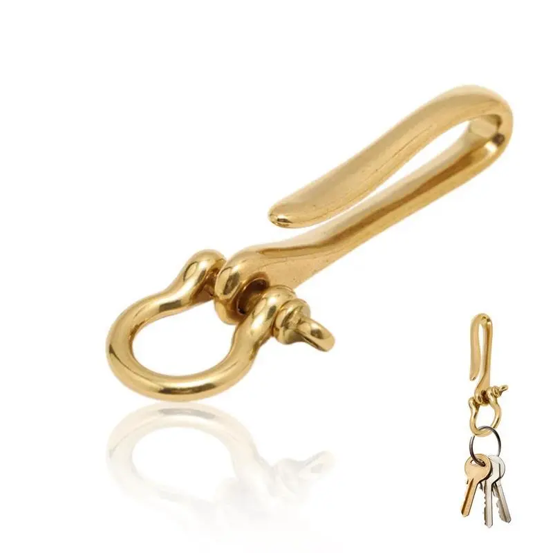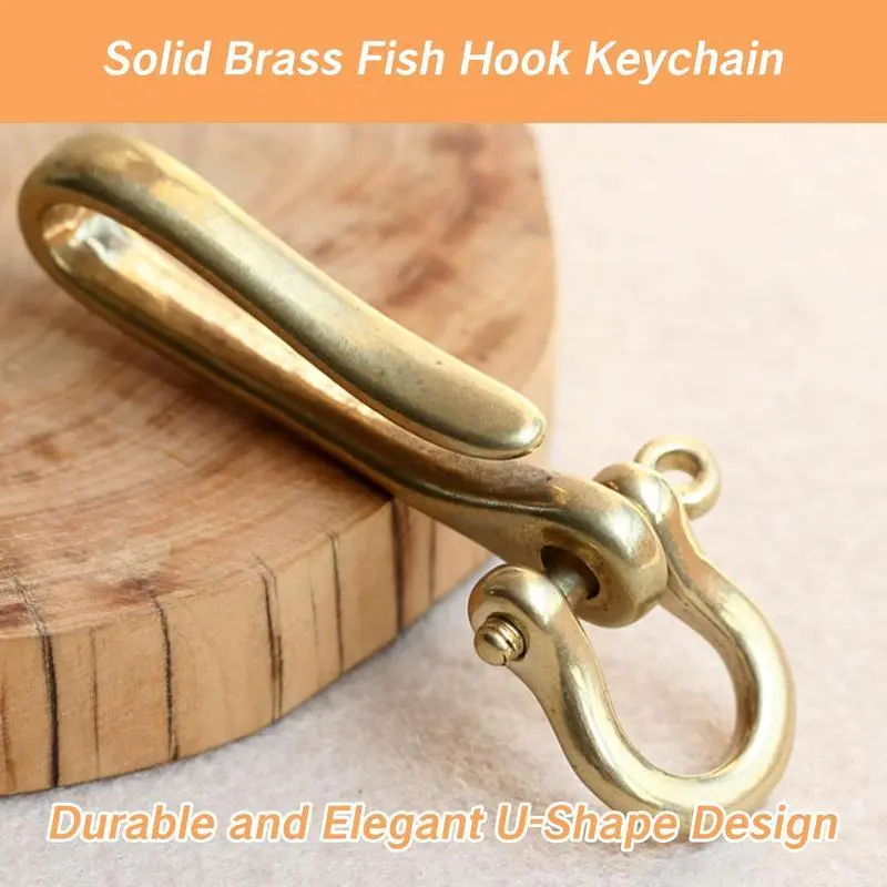 Brass Key Hook Keychain Solid U Shape Golden Ring Fish Design Heavy Duty With Shackle Pocket Clip For Car Keys Purse Accessory Men And Women Durable Holder