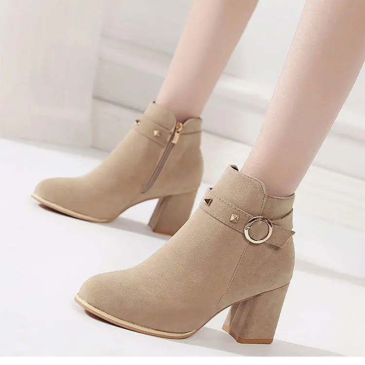 Heels measure approximately 2.5", true to size. All Brand New. Well Made- Crafted of velvety suede, man-made leather lining, leather footbed, super comfy to go. Features- Our sophisticated ankle-cuff boots feature a sturdy mid-block heel, slip-resistant sole, round toe, solid color, side zippers, finished with an archival strap, and a mini crystal hangtag. It's a timeless classy look. Versatile- Simple style stylish booties, fit many different dressing occasions in life for every woman, you can wear any outfit for formal, casual, daily, or any gala occasion. Whenever in fall and winter, even spring. Coutgo are comfy to go everywhere- Every pair of shoes is refined, stable heel and perfectly supported sole with the extra insole, building multiple comfort wear experiences for you.