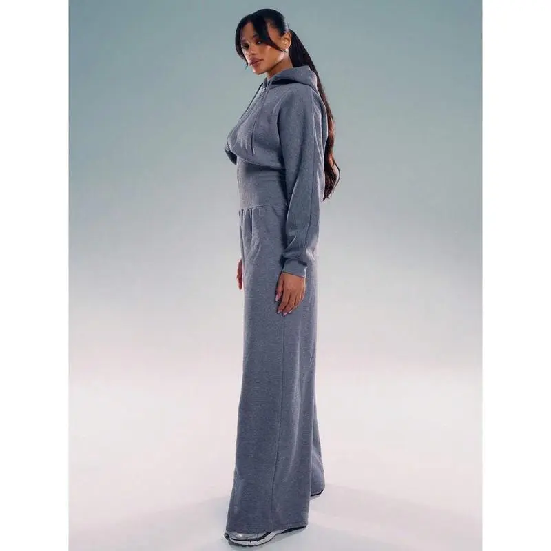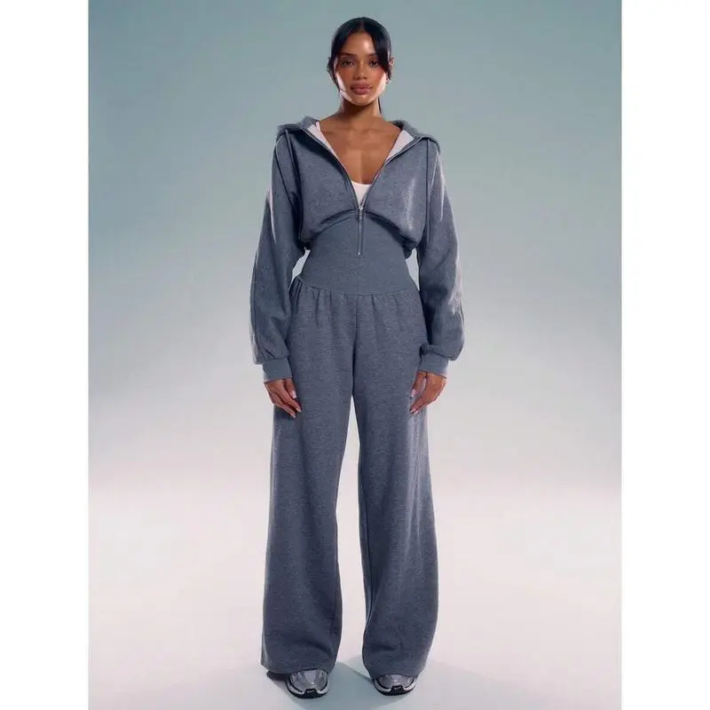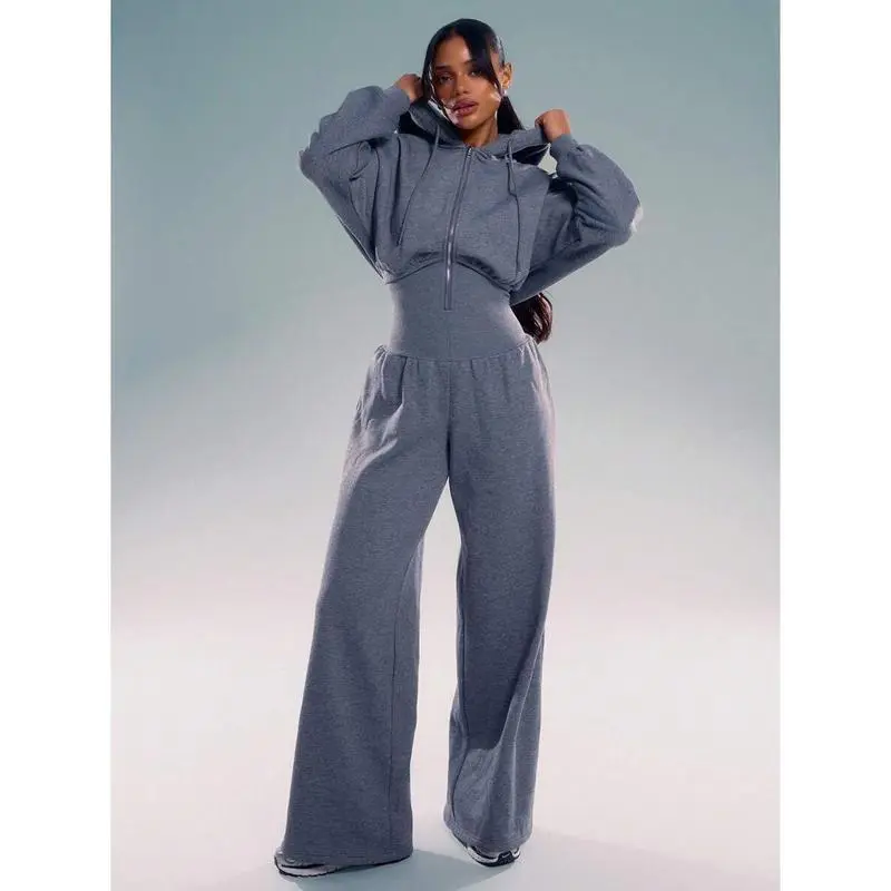 HoodedZipThroughJumpsuitCinchedWaistRelaxedLoungeCasualCapsuleWardrobeBasicEverydayBusinessOfficeWorkBackToSchoolAutumnWinterFallAirportFitDarkGrey