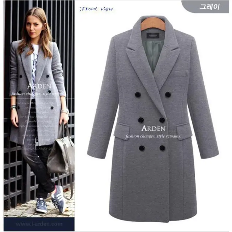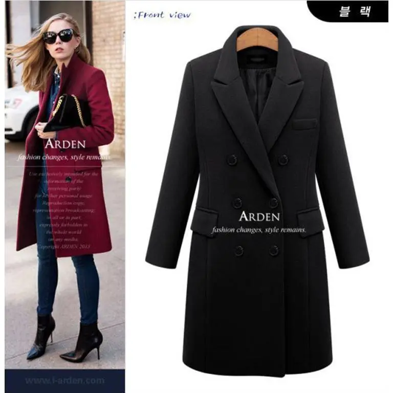 Fall/Winter2020EuropeanStationMid-LengthplusSizeWoolenWomen'sCoatSeven-ColorSize8Double-BreastedWoolenCoat
