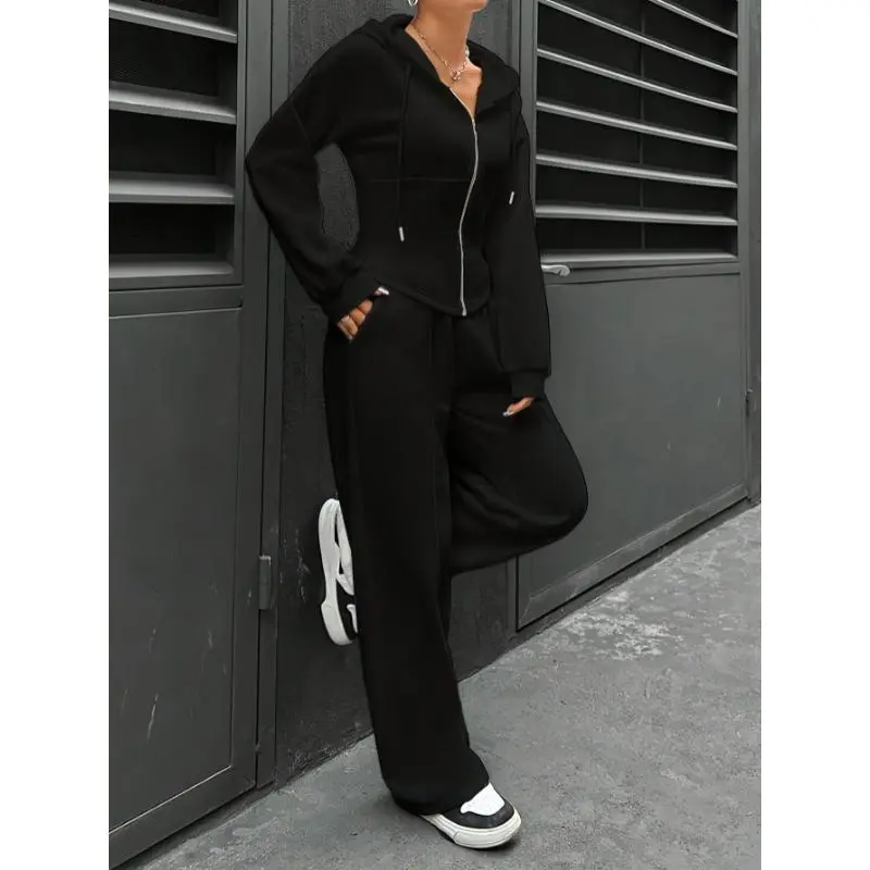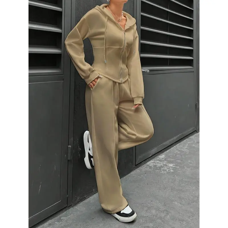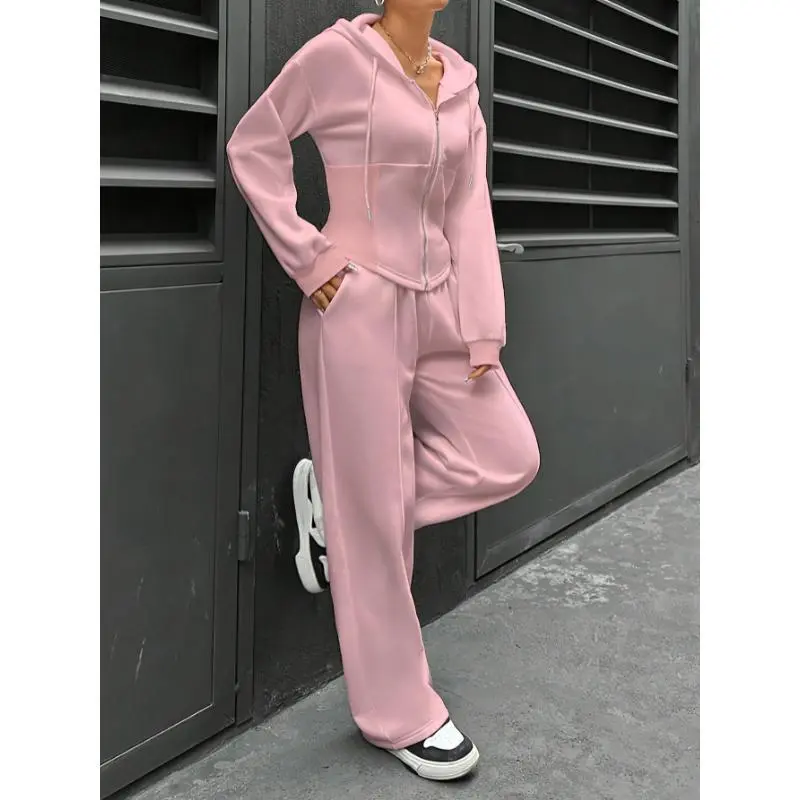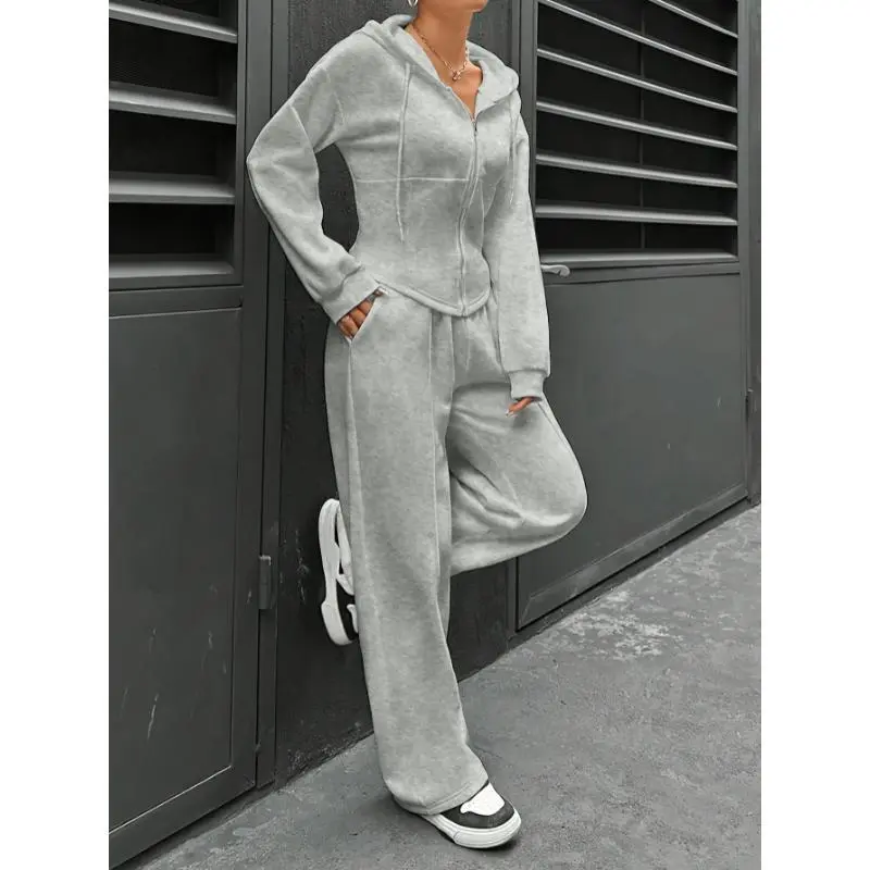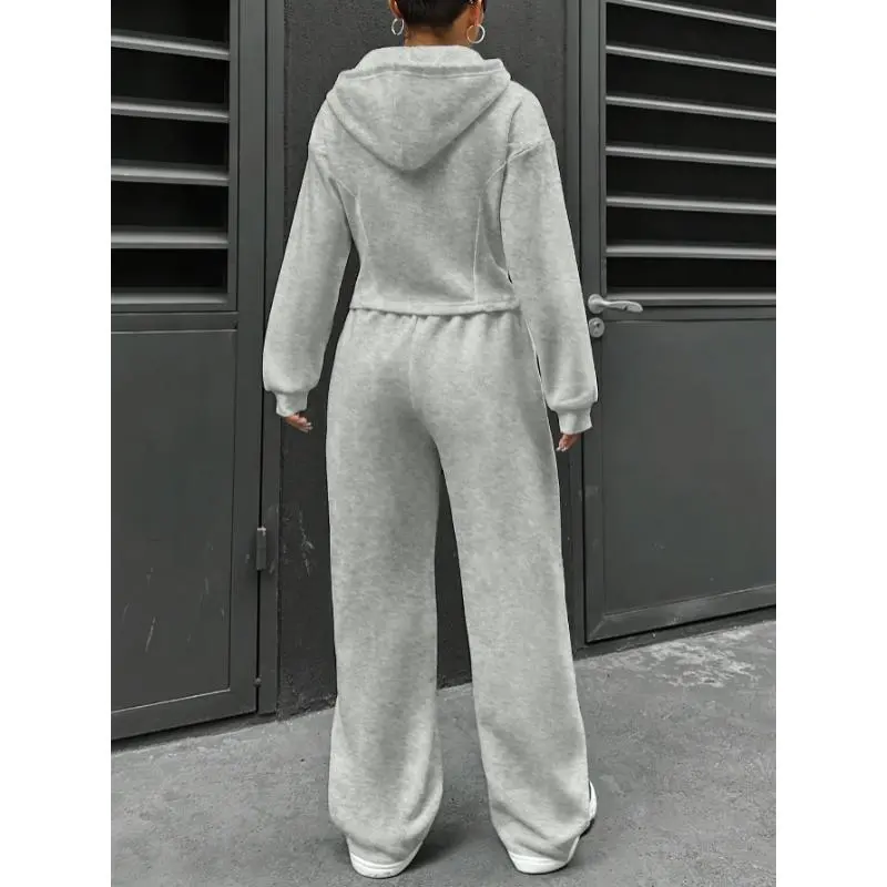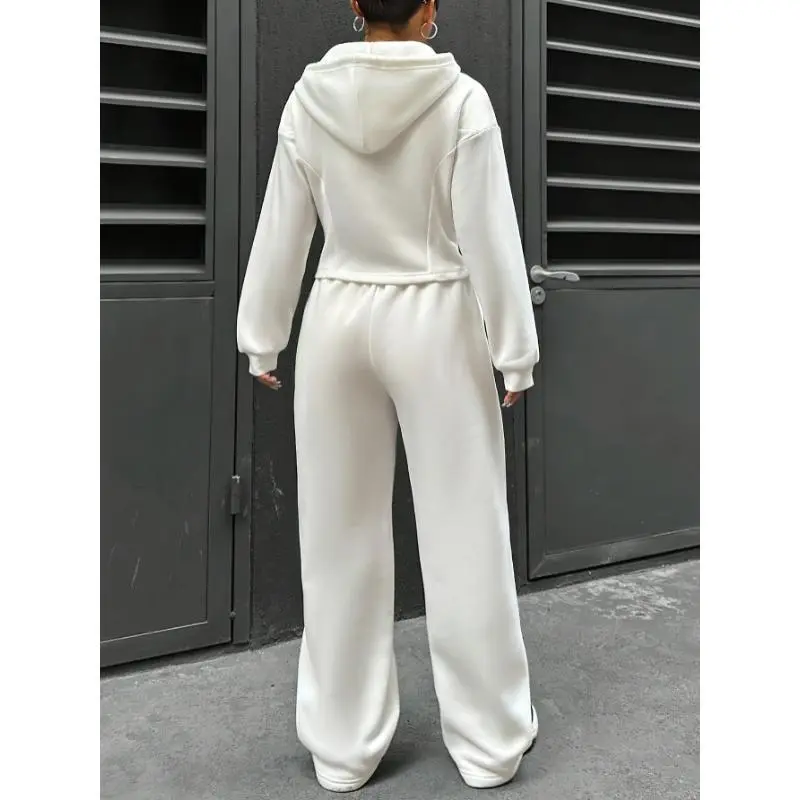 Women'S White Hooded Sweatshirt & Jogger Pants Set - Casual Outfit for All Seasons, Allseason Outfit | Relaxed Fit Pants | Zippered Hoodie