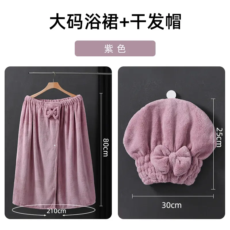 【Strong Absorbency】: Featuring high absorbency, this bathrobe effectively dries your skin for a refreshing experience after a bath or spa. 【Practical Pockets】: Equipped with pockets, this bathrobe allows for convenient storage of personal items while you relax or move. 【Bath Hat Included】: Comes with a matching bath hat, adding an element of functionality, keeping hair dry and in place during use. 【Bow Detail】: Decorated with a charming bow, this bath towel wrap adds a touch of visual interest while maintaining simplicity. 【Multiple Uses】: Designed for spa and sauna environments, this wearable towel set caters to a range of relaxation activities.