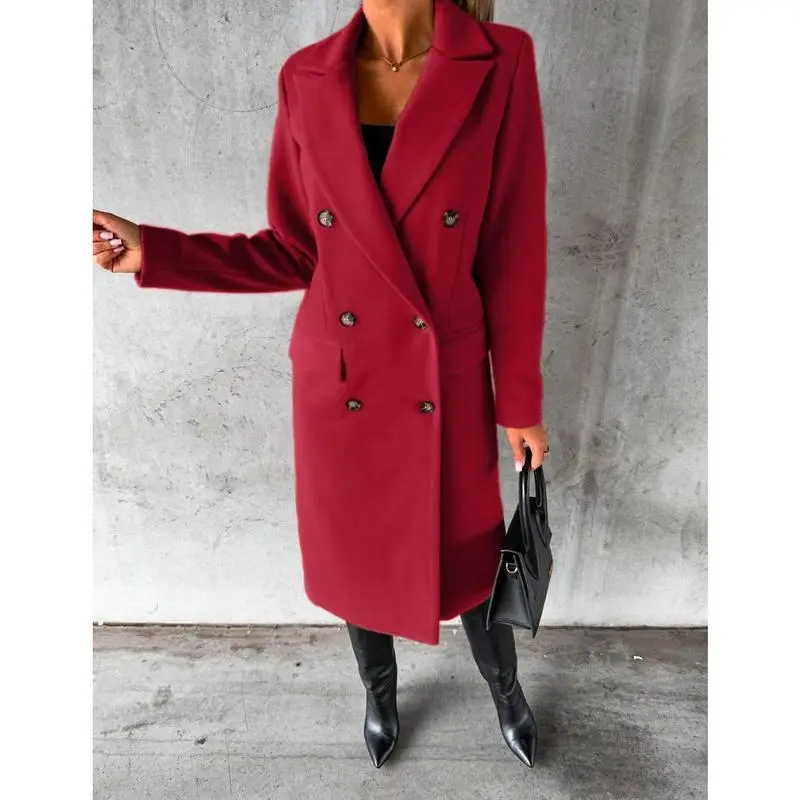 WomensLongWoolCoatDoubleBreastedTrenchCoatFallWinterClothesWomenswearJackets