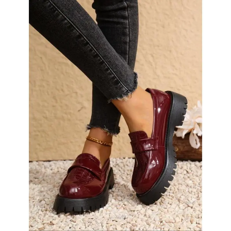 Women's New Fashionable Platform Comfortable and Soft Burgundy Loafers, A Must-have for Daily Casual Fashion Wear, Simple and Versatile Trendy One-foot Platform Shoes, A Must-have for Commuting To Work and School in All Seasons, and A Must-have for Gifts
