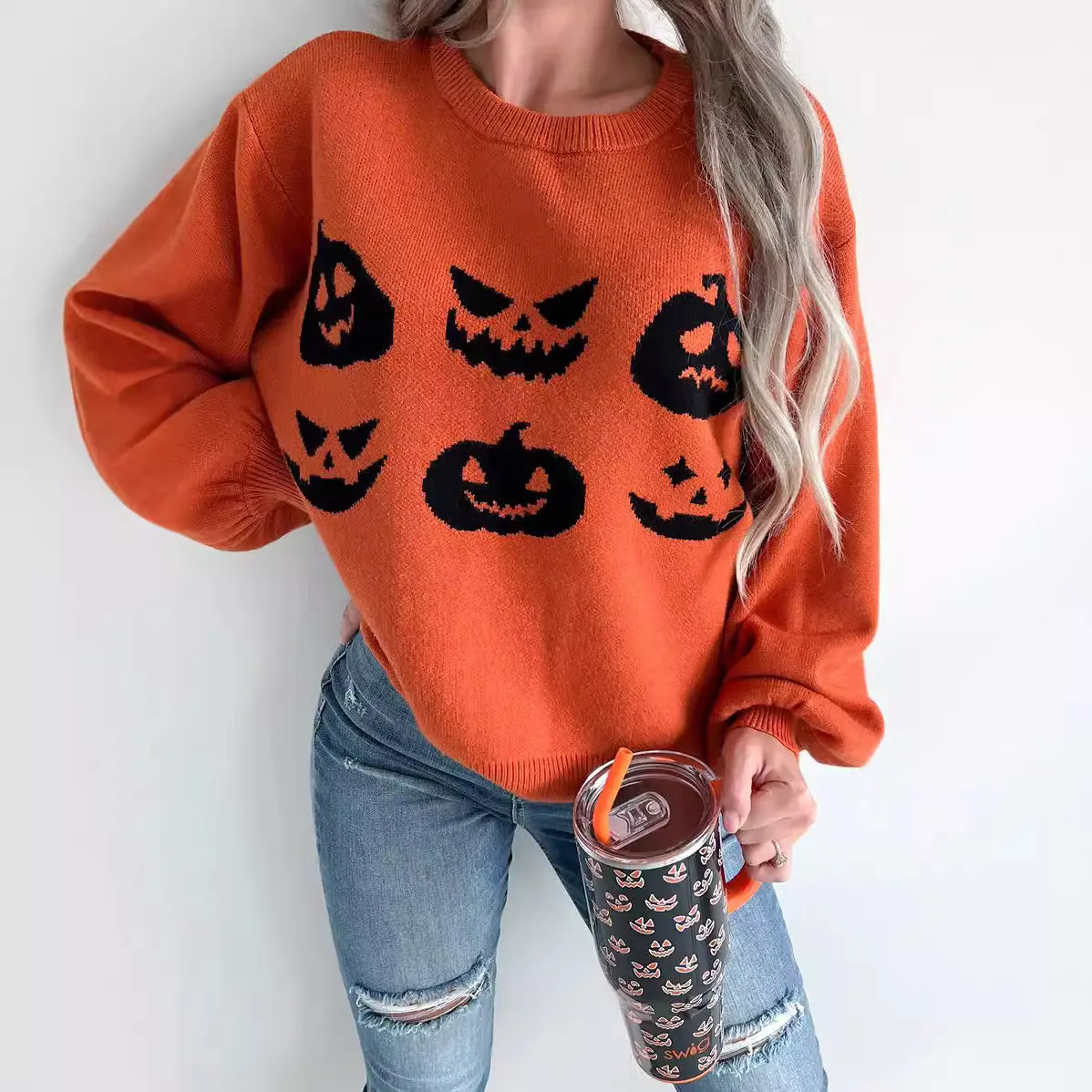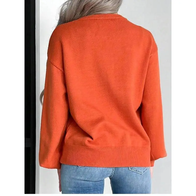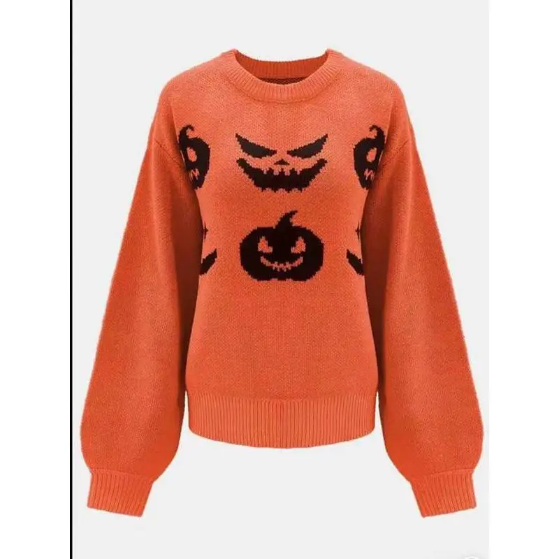 【Unique Pattern】: Features a distinctive pumpkin and ghost motif, setting it apart in the seasonal sweater category. 【Moderate Thickness】: Crafted with a moderate fabric thickness, suitable for fall and winter wear, ensuring warmth without bulk. 【Retro Appeal】: Showcases a retro aesthetic that adds a nostalgic touch, appealing to those who appreciate vintage styles. 【Fitted Shape】: Designed with a fitted silhouette, enhancing the body's shape while providing a tailored look. 【Round Neckline】: Equipped with a classic round neck, facilitating easy layering and pairing with various outfits.