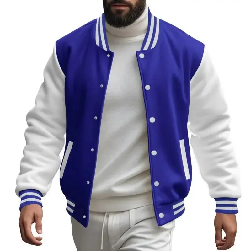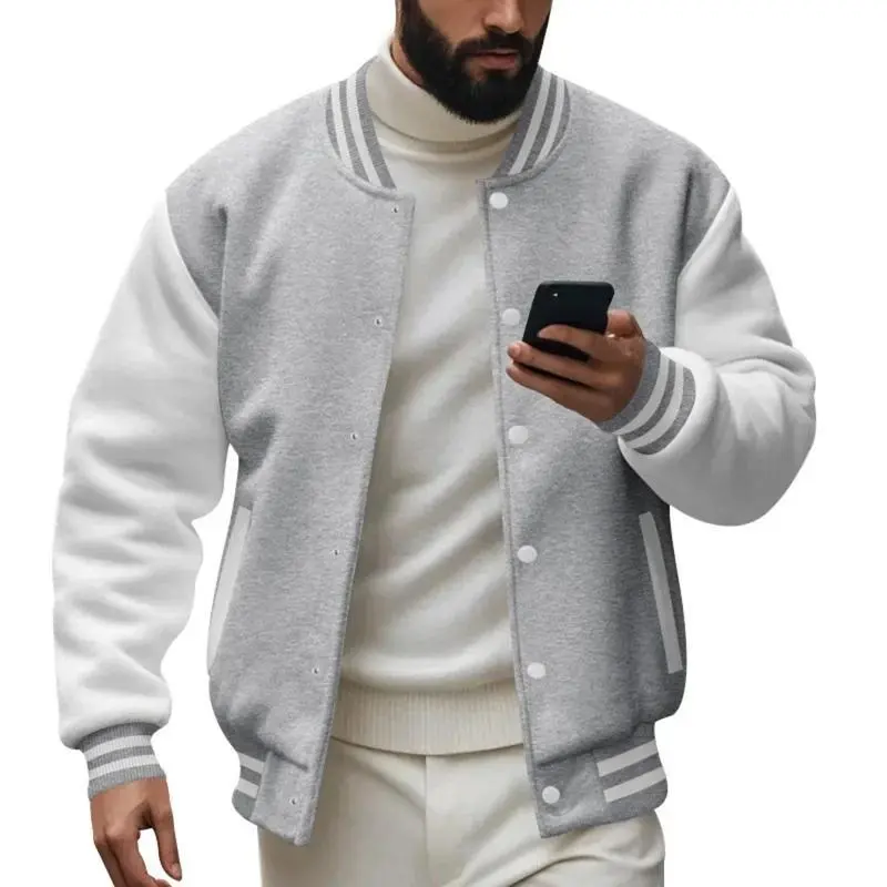 Men'sAutumnandWinterFlightJacketBaseballJerseyVelvetLooseCasualStand-upJacketMenVarsityJacketCoatforMen
