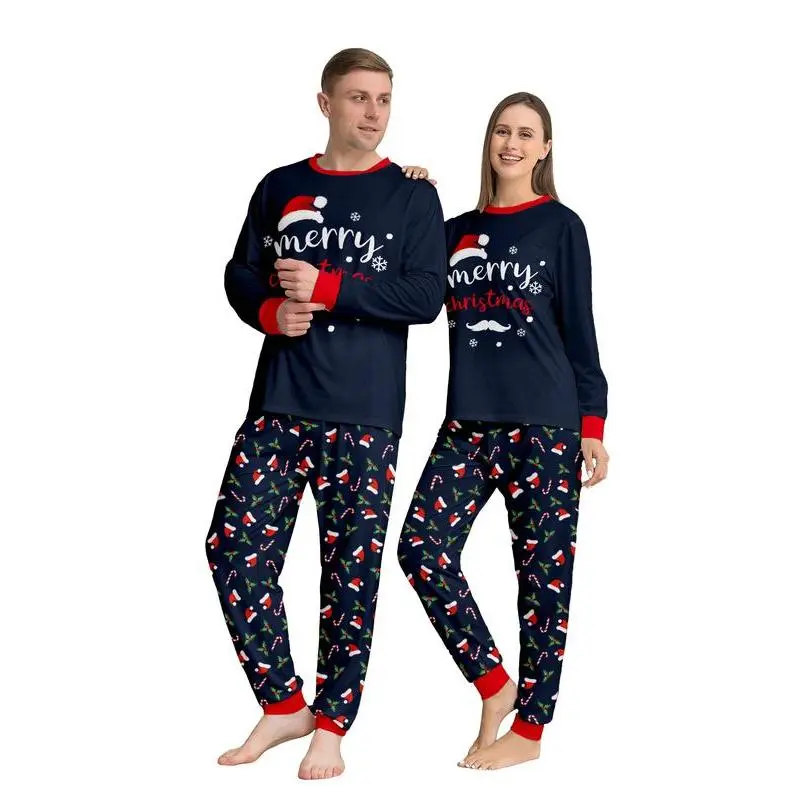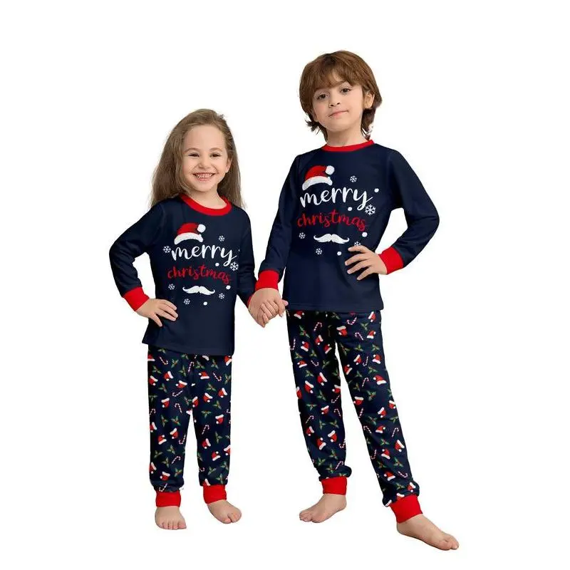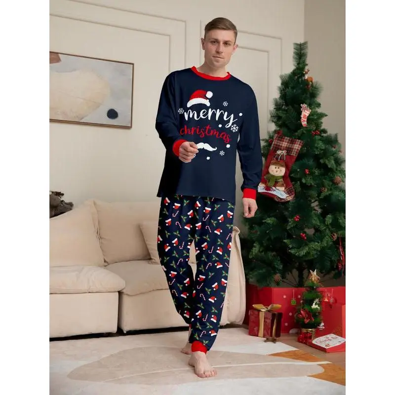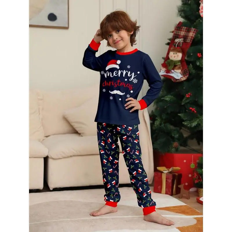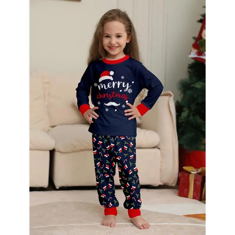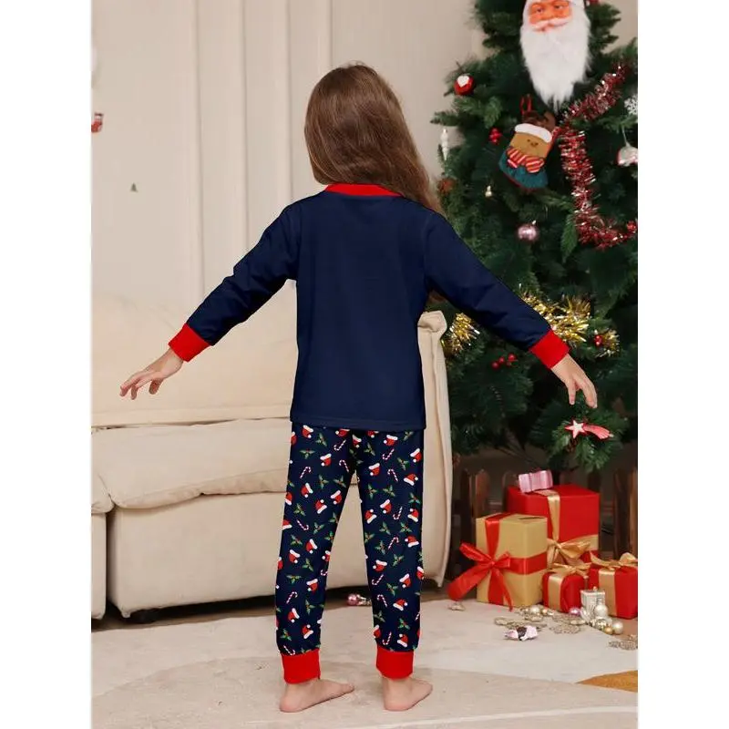 ChristmasFamilyPajamasSet,BlueCartoonPrint,LongSleeveTopandPants,CasualHomeWearforAllSeasons