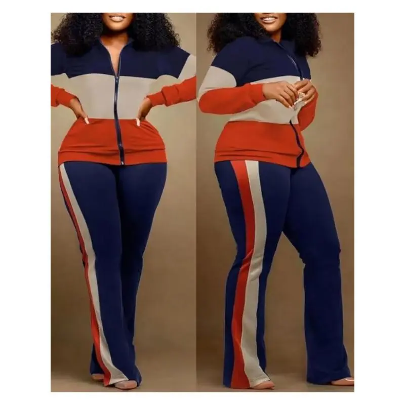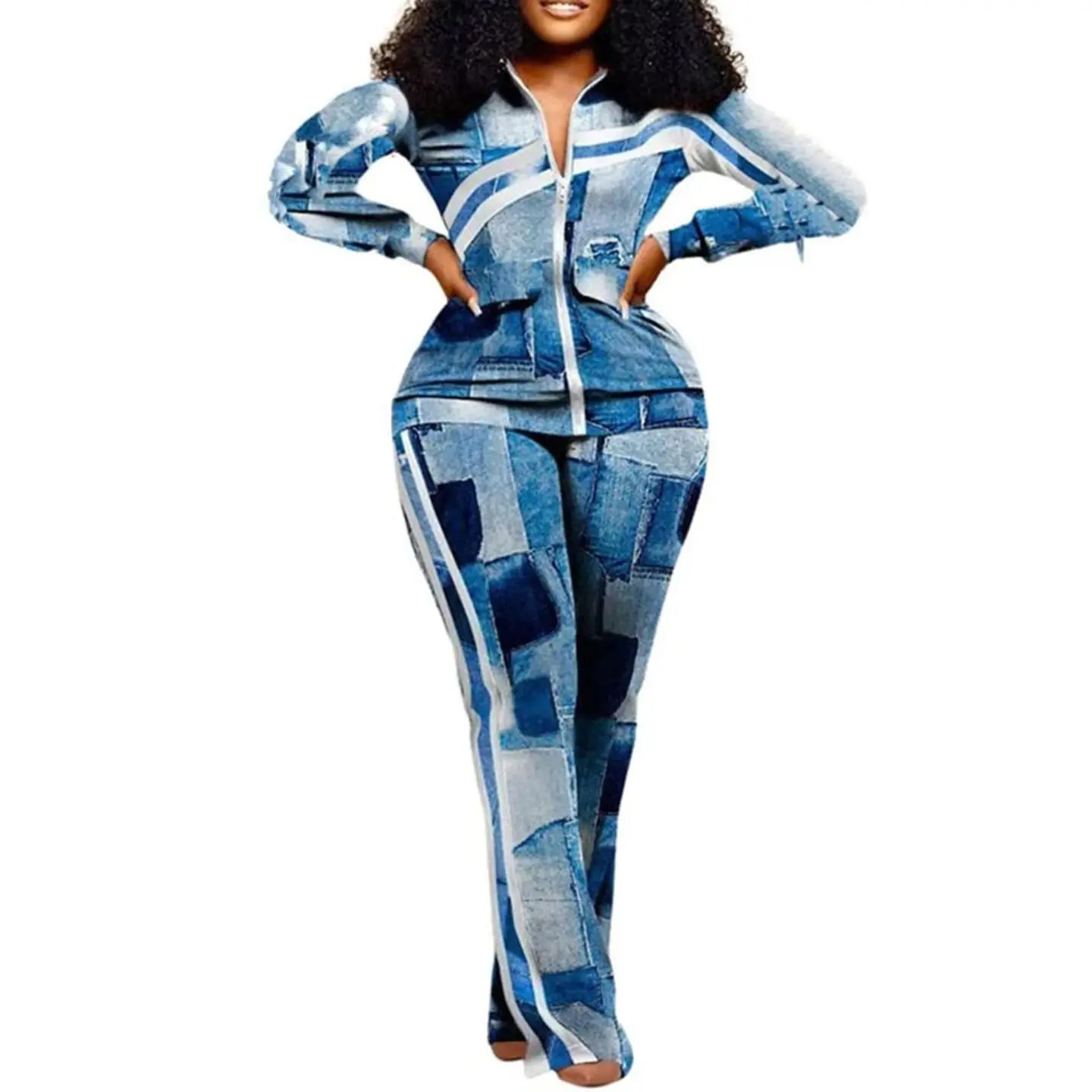 WomensTwoPieceOutfitsZipperUpPatternPrintLongSleeveJoggingWeatSuitsSuits2pcsHighWaistSkinyLongfittersbrownmatchingsetpocketDressSetWomen'sAdjustableWideLegOverallsClothesFabricWomenswearBottomPantsSpandex