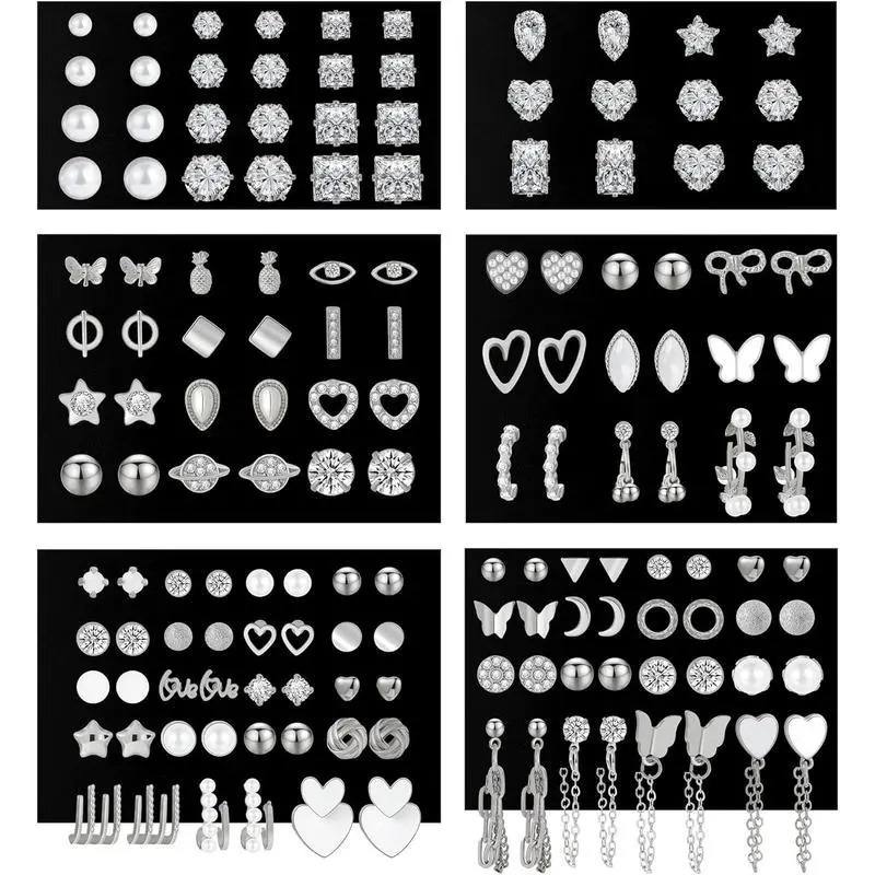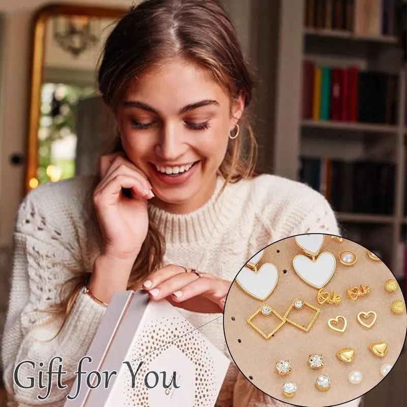 70 Pairs Gold Stud Earrings Set for Women Multipack, Trendy Hypoallergenic Cubic Multiple Piercings Earrings Packs, Chunky Hoops Earrings for Gift