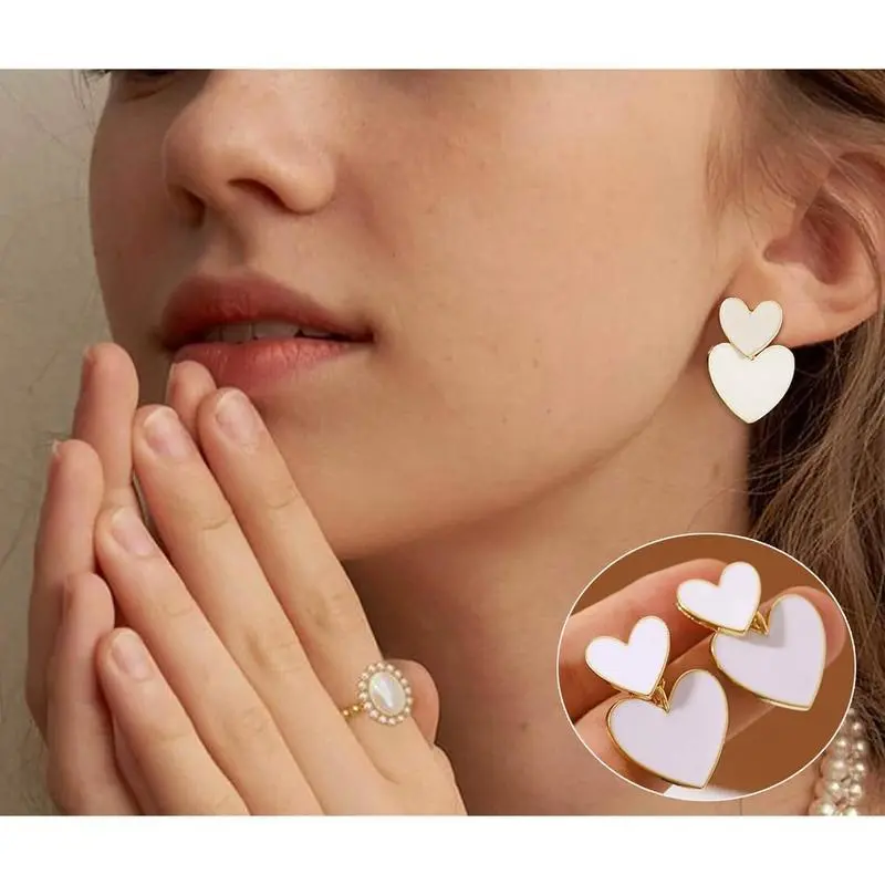 Milan Chiva 14K Gold Plated Small Huggie Dangle Hypoallergenic Earrings for Women Lightweight Trendy Heart Dainty Jewelry with Multicolor Stones