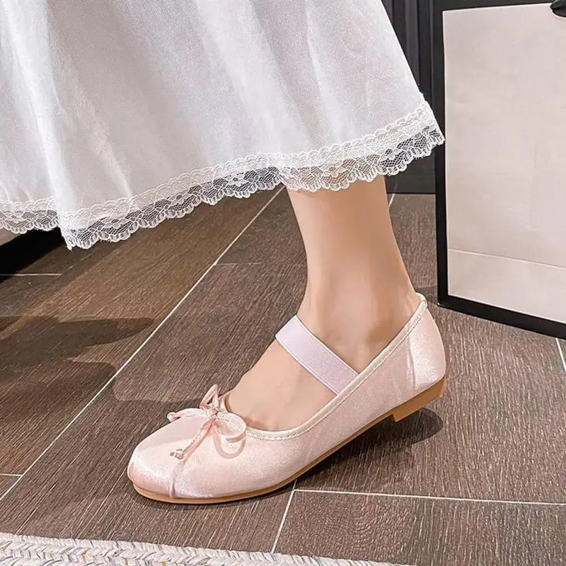 Women's Pink Ballet Flats with Bow - Comfortable & Lightweight Shoes| Ballet Flats with Strap| Non-Slip Sole & Cushioned Arch Support Slip-On Shoes for Wedding/Work