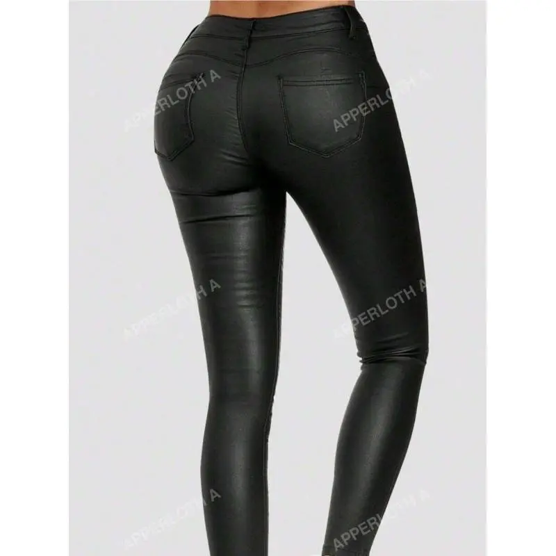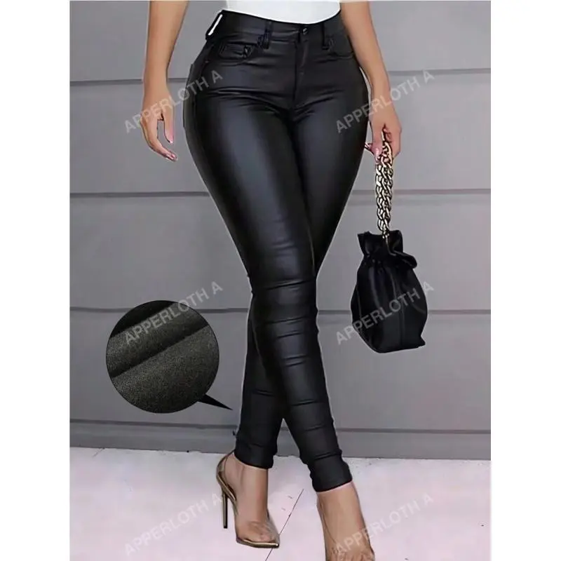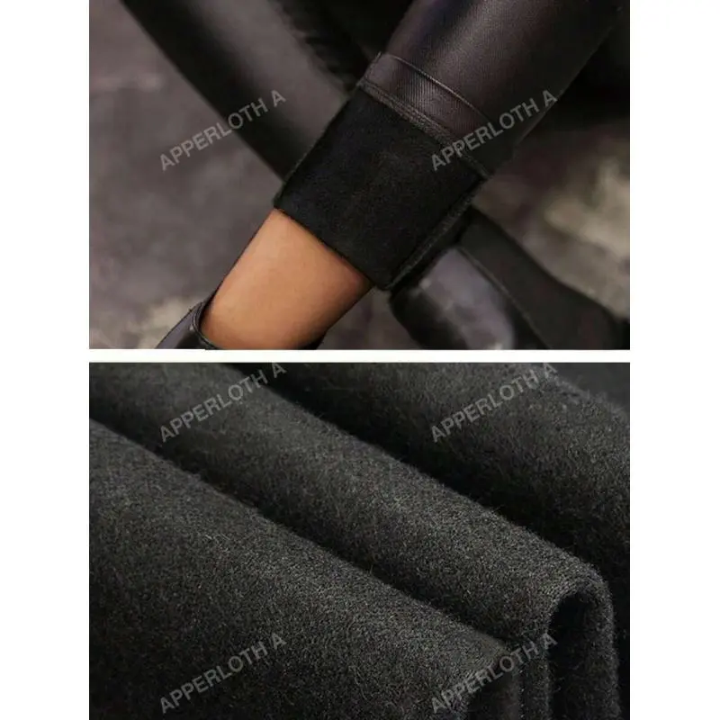 A High Waist Thermal Lined PU Leather Skinny Cropped Pants Fit Party Womenswear Bottom