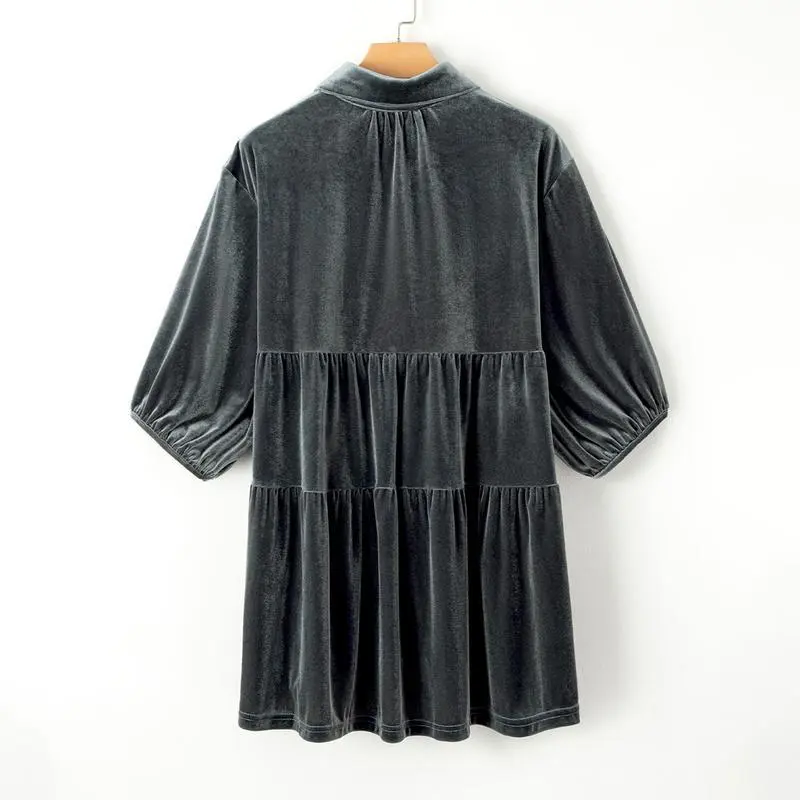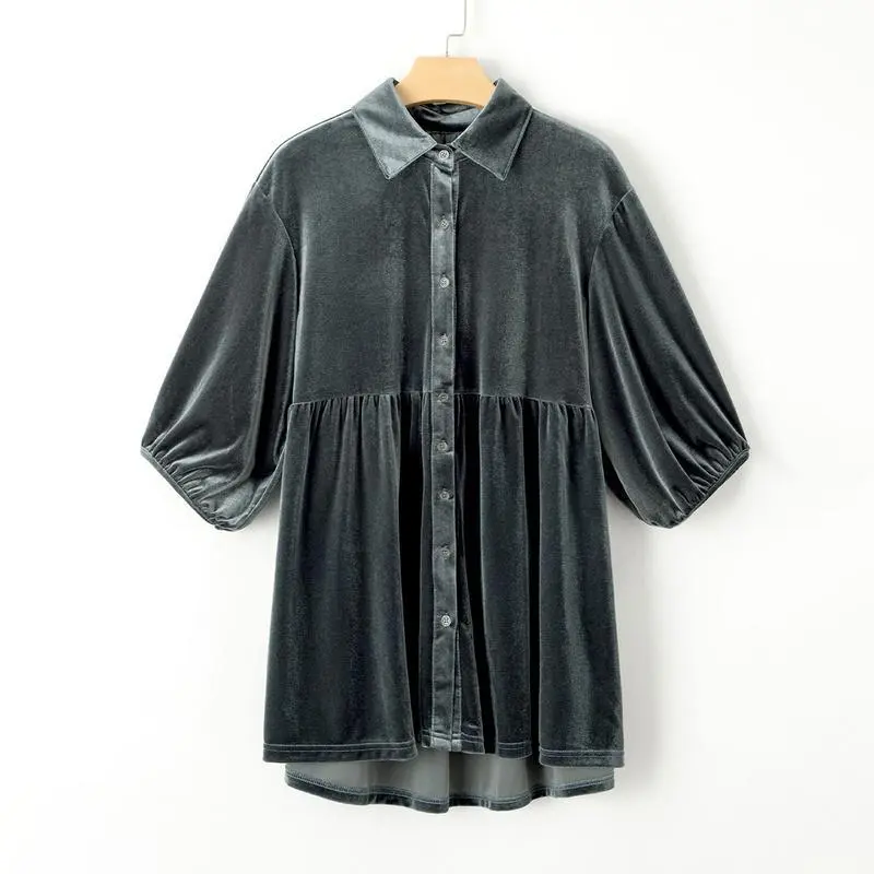 This velvet tunic shirt tops features a babydoll silhouette that flatters any body shape. It provides a comfy and relaxed fit style that accentuates your curves. The 3/4 sleeves add a touch of femininity and sophistication. A velvet dress can be styled as a top with leggings or simply as a mini dress. Elevate your wardrobe with the Velvet Tunic Dress! The design is simple yet elegant, making it a staple piece.You can pair with different accessories and outfits.Womens shirts dress are chic and appealing.