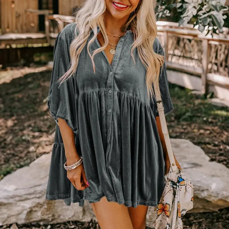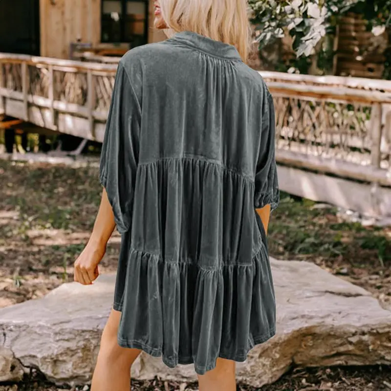 Women Fall Fashion 3/4 Sleeve Velvet Tunic Babydoll Top| Perfect for Holiday Season