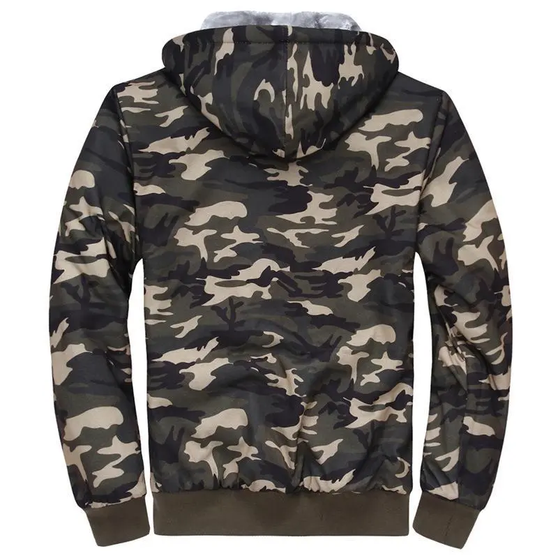 Winter Camouflage Hoodies Men Thick Warm Fleece Jackets Streetwear Hip Hop Sweatshirt Military Hooded Zipper Coat Plus Size 5XL