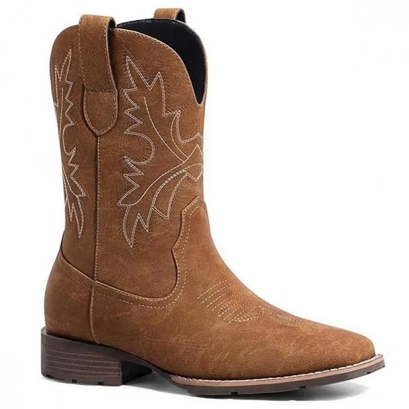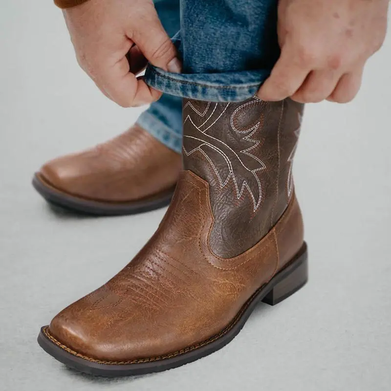 CowboyBootsforMen-WesternMen'sBootswithClassicEmbroidered,SliponSquareToeBootsChunkyHeelAnkle,DurableShortBootsforSpringFallFathersDayGift