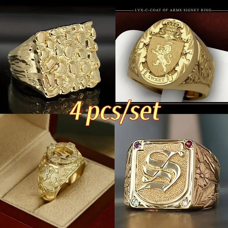 4count/setLuxuryMen'SFashionableDomineeringBusinessRingNobleMen'SSet-Elegant,High-quality,Comfortable,Luxurious-platedLowAllergyMen'S-PerfectBirthday,EngagementRingOrAnniversary