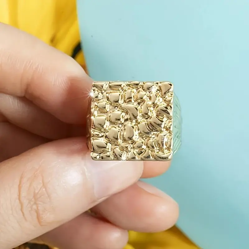 Aprilery Chunky Square Signet Ring – Bold & Versatile Cocktail Ring for Women & Men, Smooth Matte Finish, Solid Construction, Anti-Tarnish, Hypoallergenic, Elegant & Stylish, True to Size, Ideal for Large & Medium Hands - Greenish