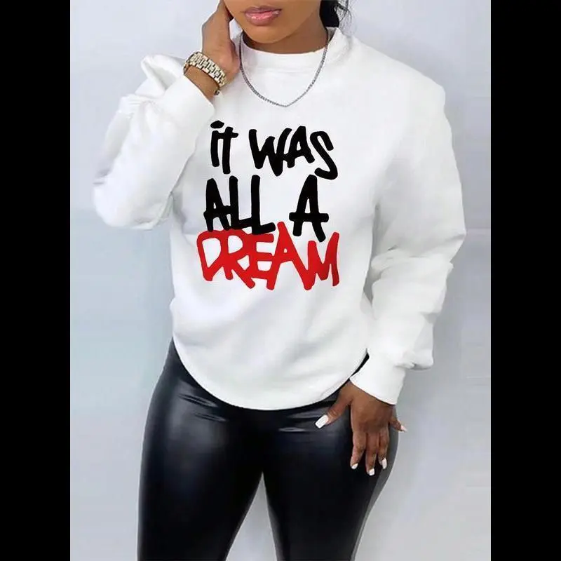 Women's Letter Print Crew Neck Sweatshirt, Casual Drop Shoulder Long Sleeve Pullover, Women's Fall & Winter Clothes for Daily Wear Hoodie Tops