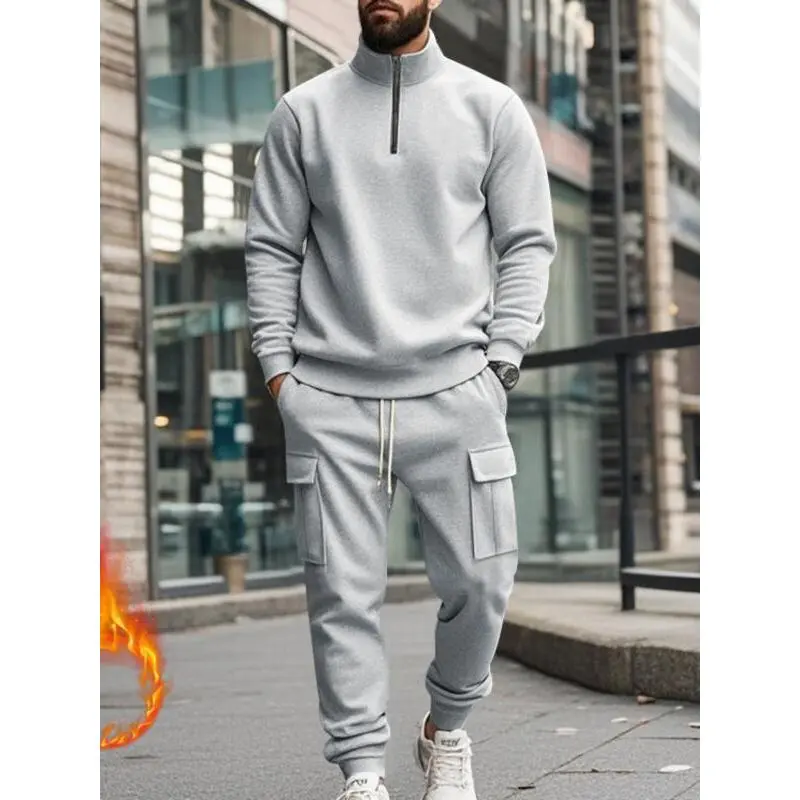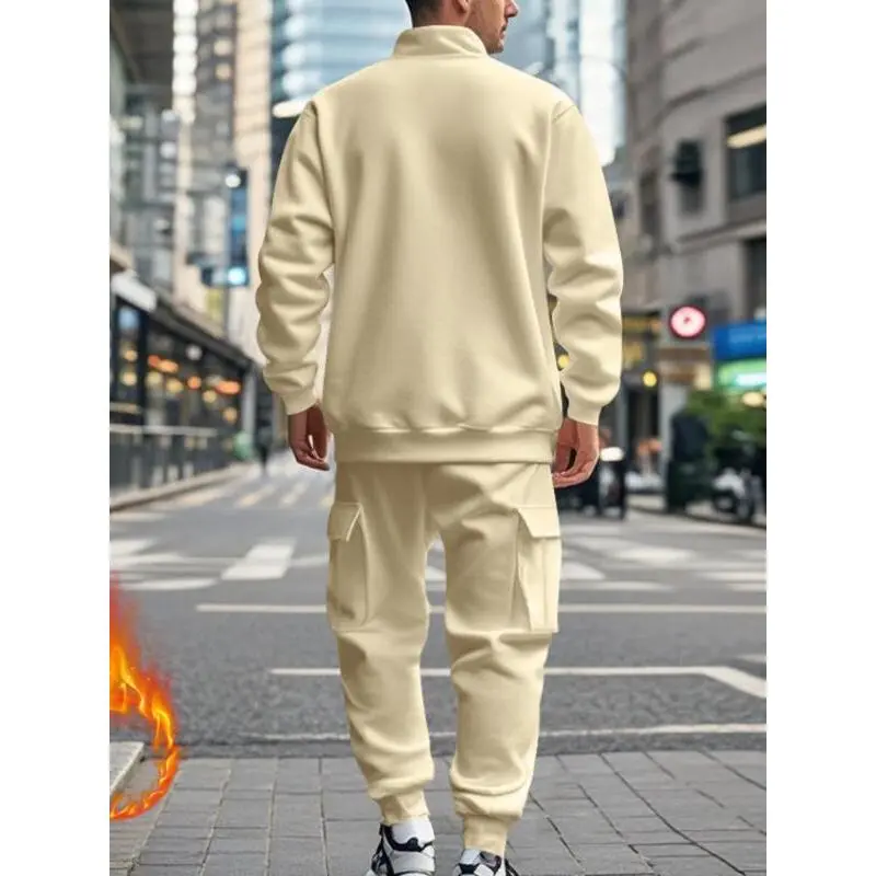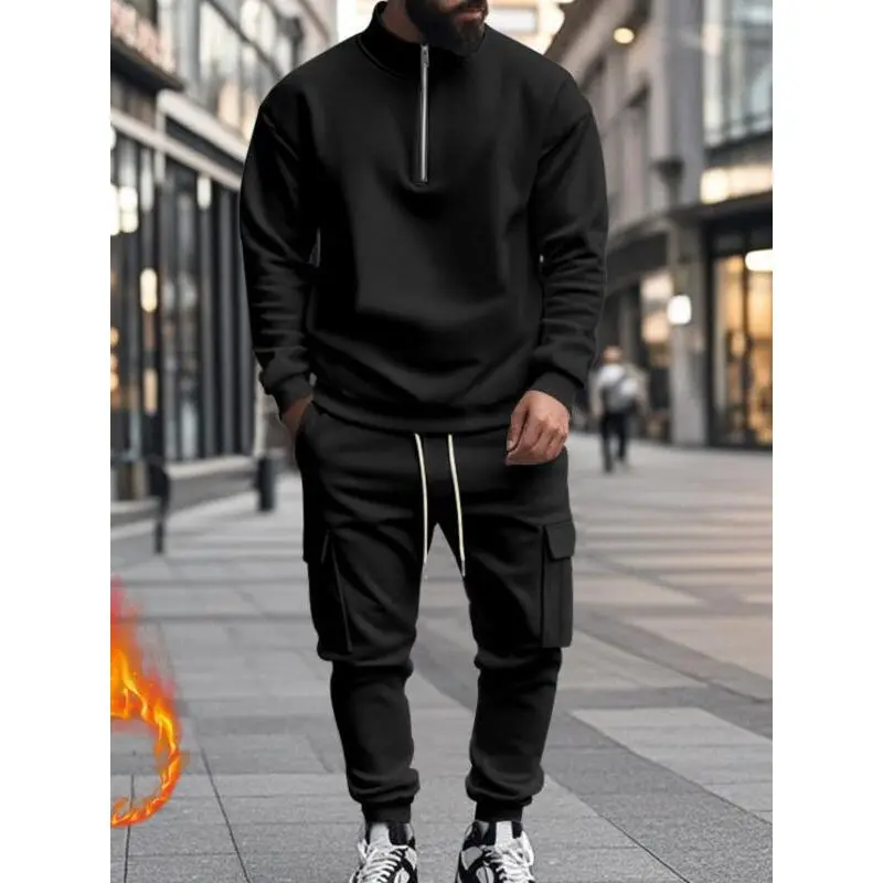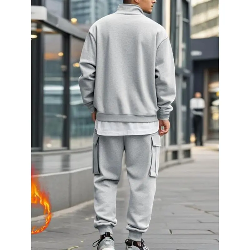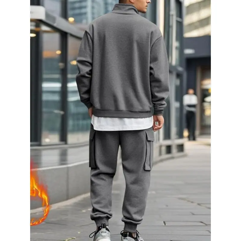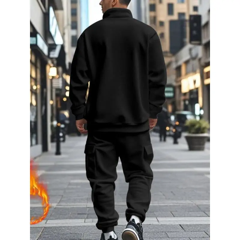 Men's Fleece Tracksuit Set - Half - Zip Mock Neck Top, Cargo Joggers, Ribbed Trim, Athletic Fit. Designed for All - Day Warmth in Winter & Casual Settings, Suitable for Outdoor Workouts, Urban Commutes & Lazy Sundays. A Must - Have for Modern Men Seeking