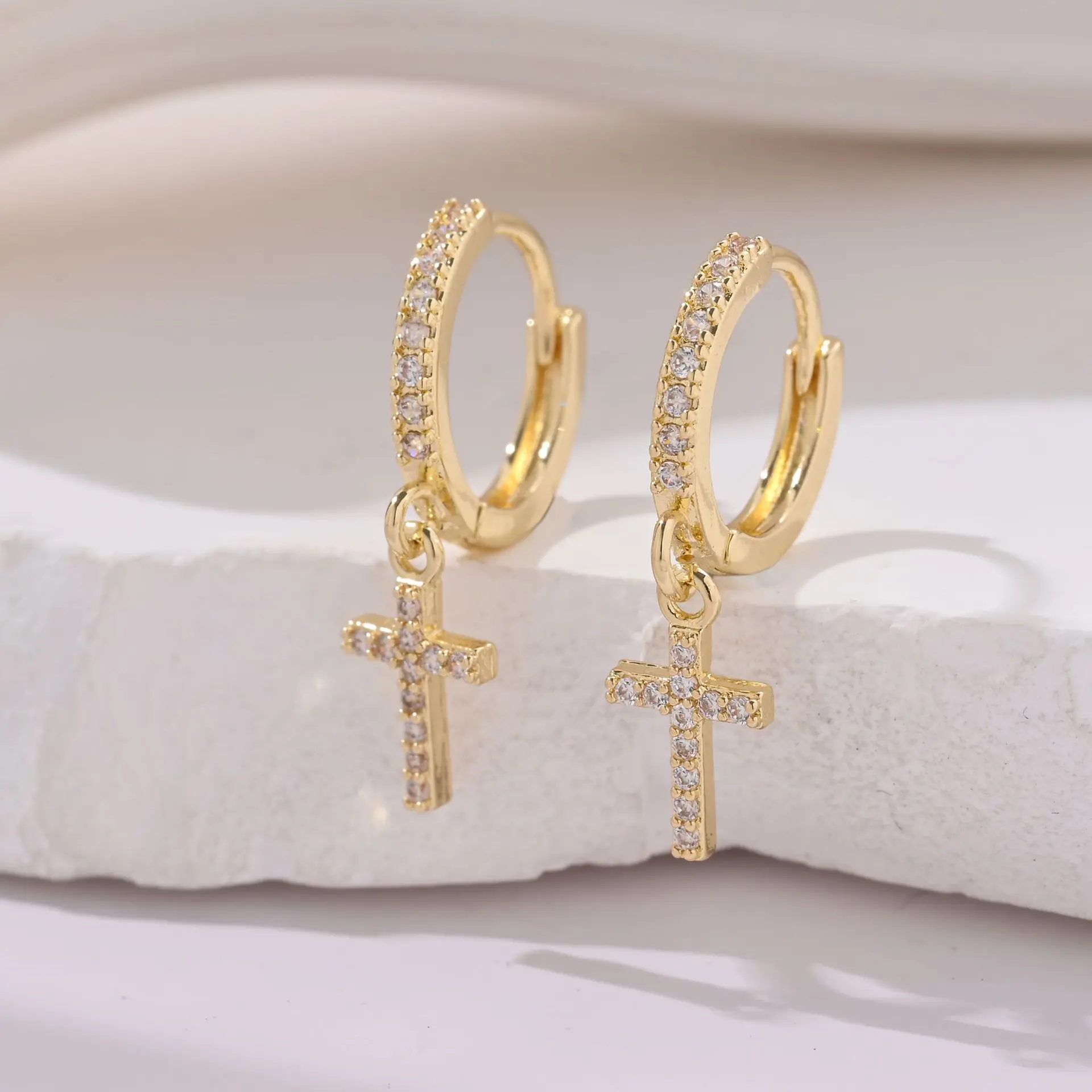 🌟 Elegant S925 Sterling Silver Cross Dangle Hoop Earrings 🌟
