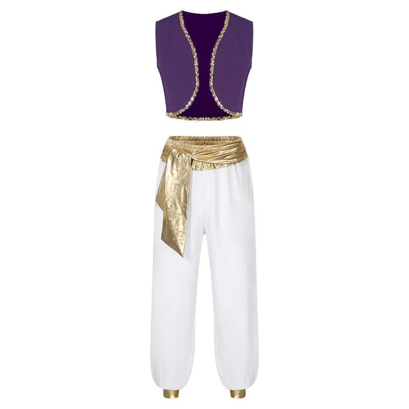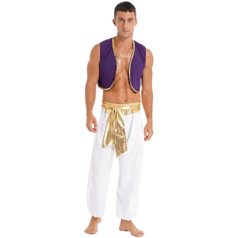 MensAladinCostumeArabianPrinceCosplayDressUpVestWaistcoatHaremPantsSuitHalloweenPartyCarnivalStagePerformance