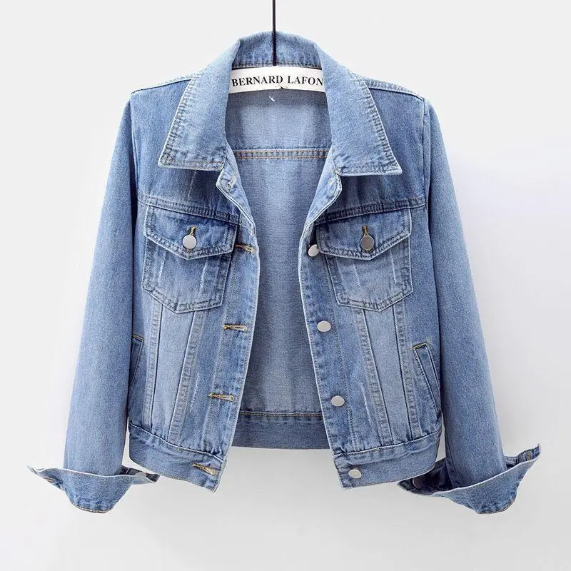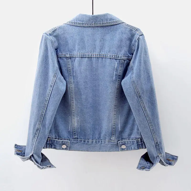 SpringAutumnWomen’sDenimJacketLongSleeveOvercoatLooseDenimCoatButtonOutwearJeansJackets
