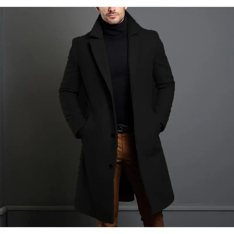 Woolen Coat Men's Mid-Length Solid Color Autumn and Winter Woolen Coat Warm Youth Overcoat Jacket